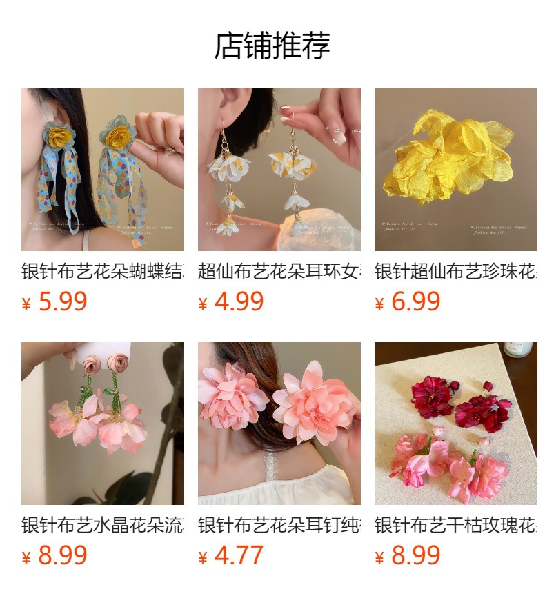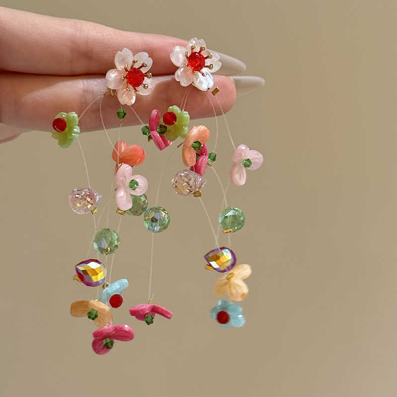 银针亚克力米珠雪纺花朵流苏耳环森系超仙度假风耳坠时尚甜美耳饰