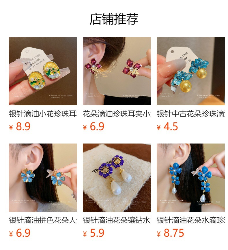 银针滴油镶钻花朵耳环复古百搭气质耳钉女时尚通勤耳饰设计感小众