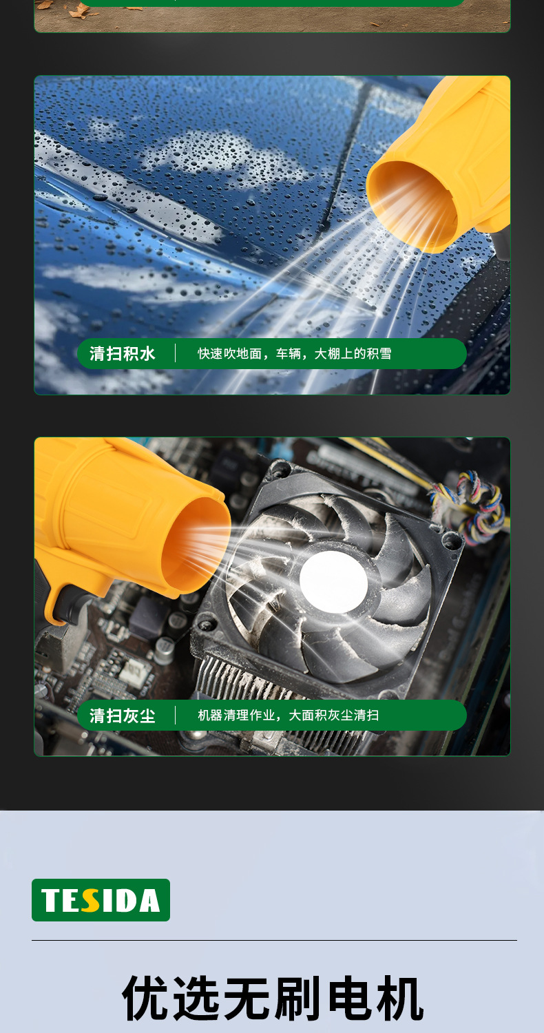 跨境多功能无刷锂电暴风机外贸家用大功率充电式除尘暴风机