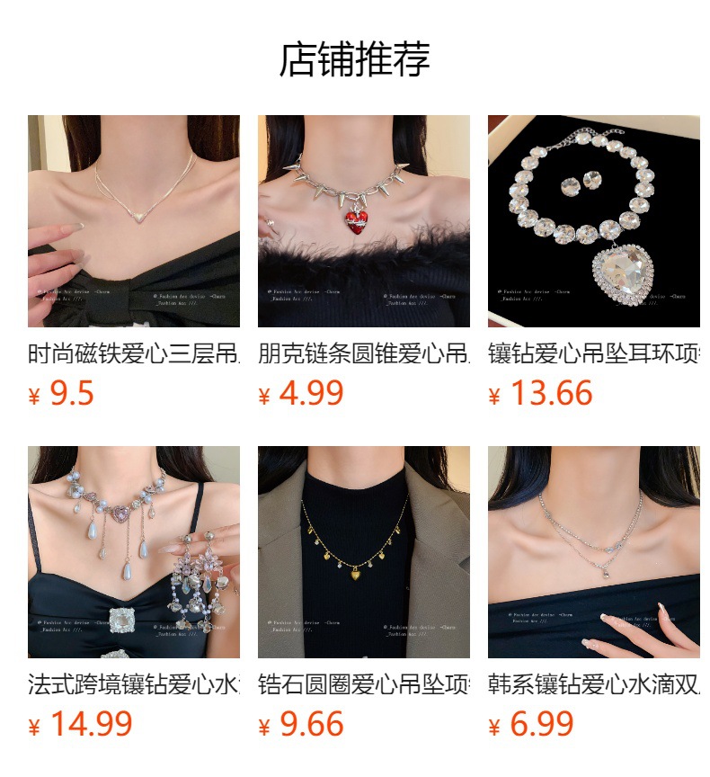 法式镶钻彩色爱心吊坠项链轻奢高级感锁骨链甜美复古宫廷风项饰女