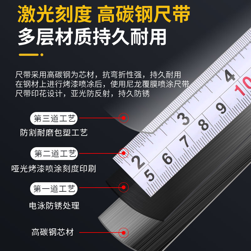 便携式迷你钢卷尺加厚抗摔耐磨5米3米钢尺黑金磨砂小型高精度盒尺