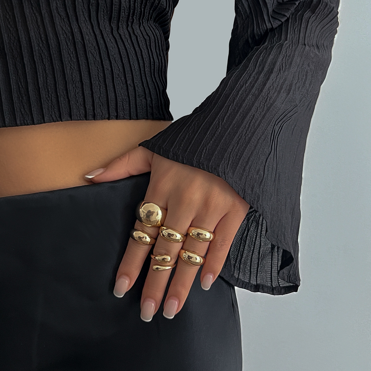 欧美跨境ins风金属光面水滴抱抱戒指女 个性设计感开口指环Rings