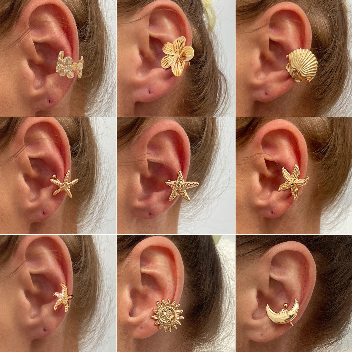 欧美跨境度假风海星贝壳c形耳夹earring 简约ins金属花朵月亮耳饰