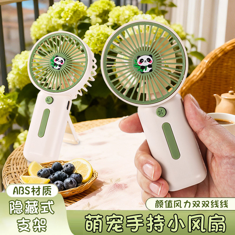 卡通熊猫手持风扇锂电迷你便携随身风扇usb充电学生宿舍桌面风扇