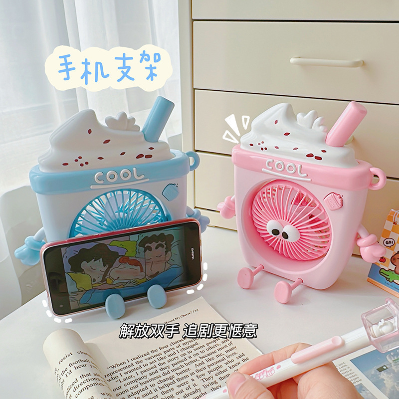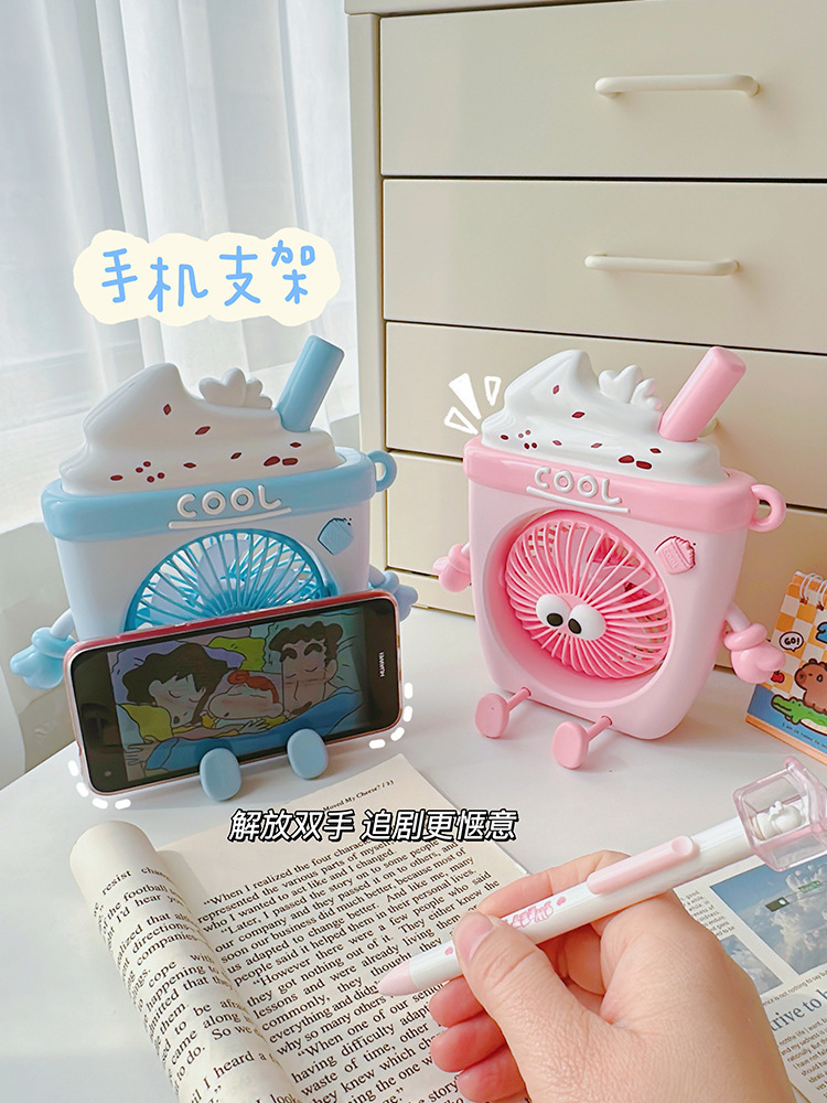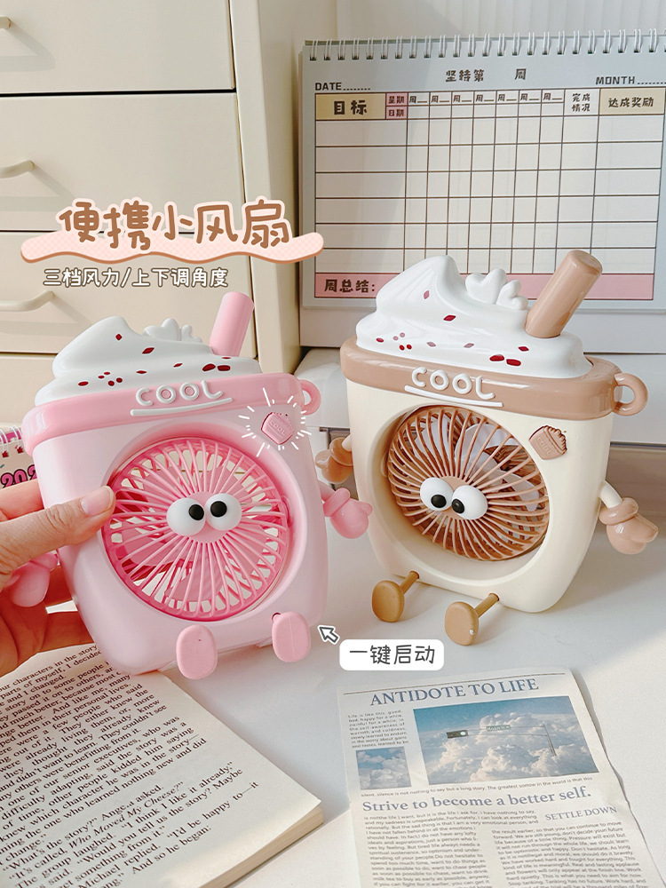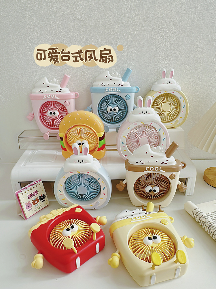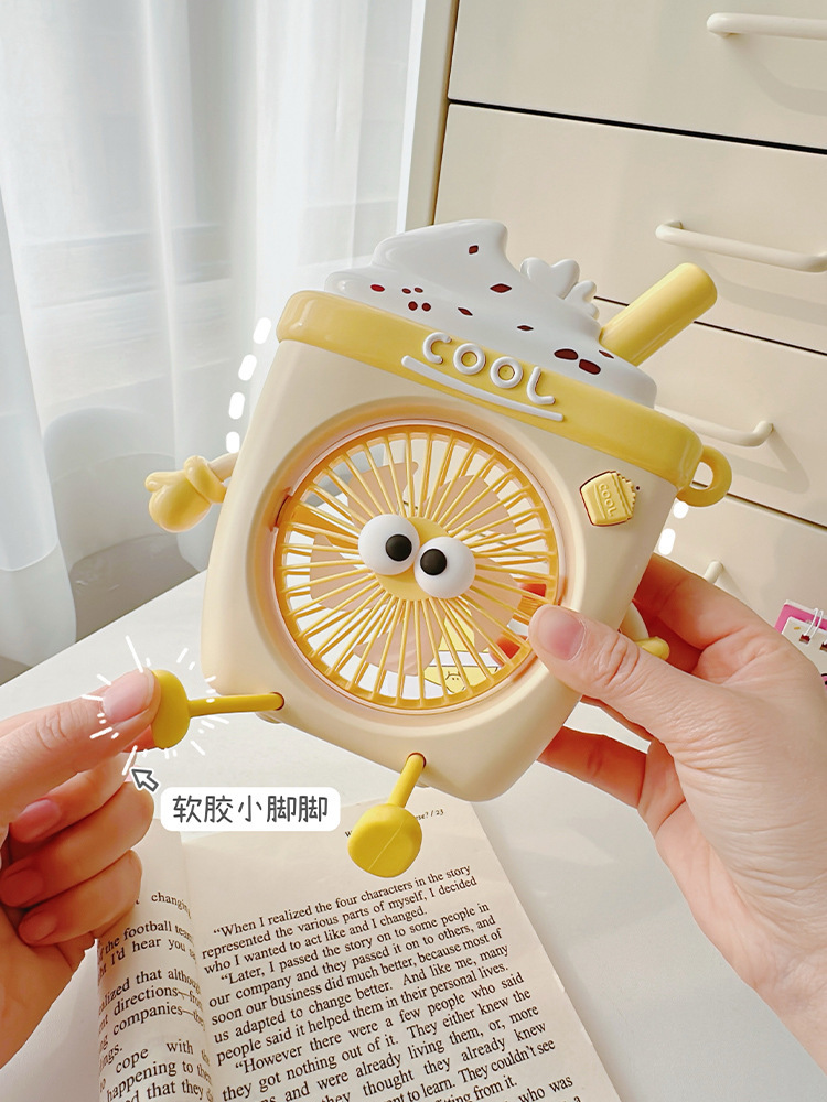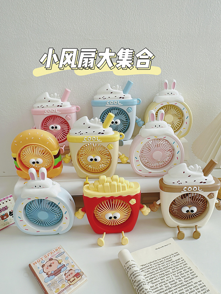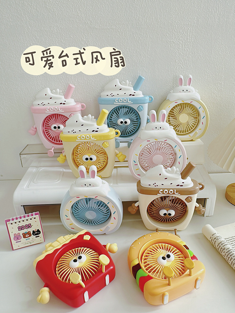 萌物冰淇淋风扇USB充电便携式桌面台式三档小电扇带支架户外风扇