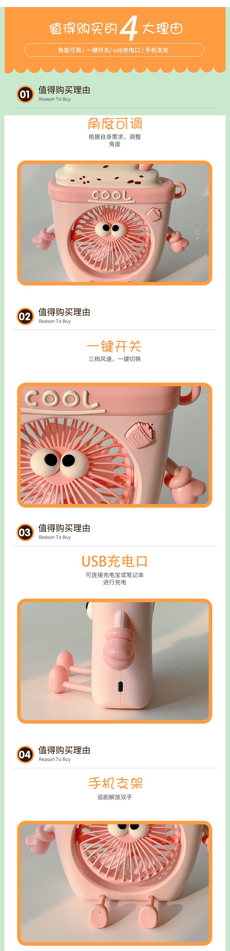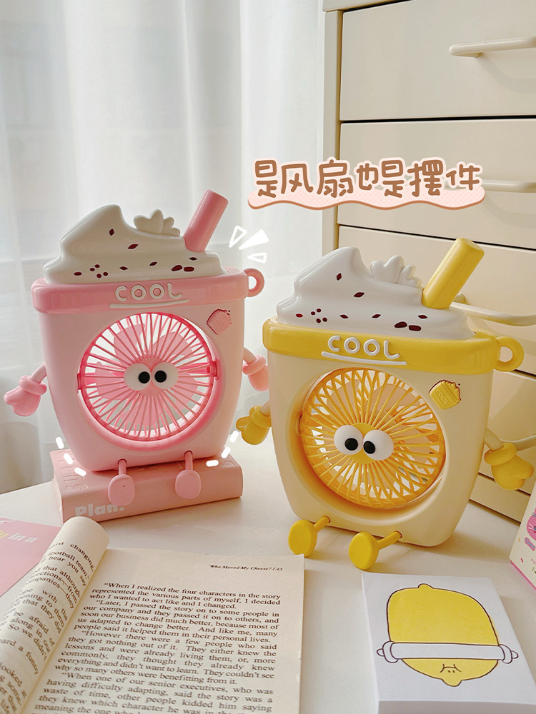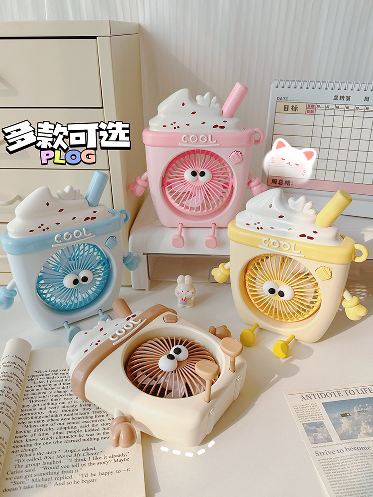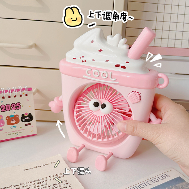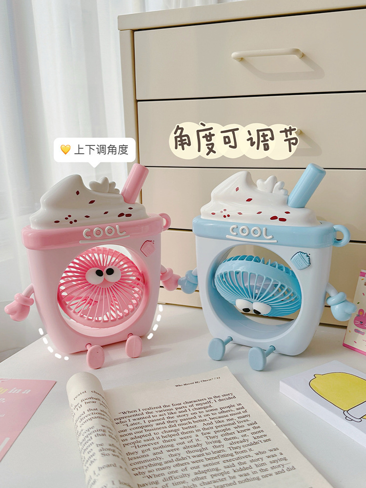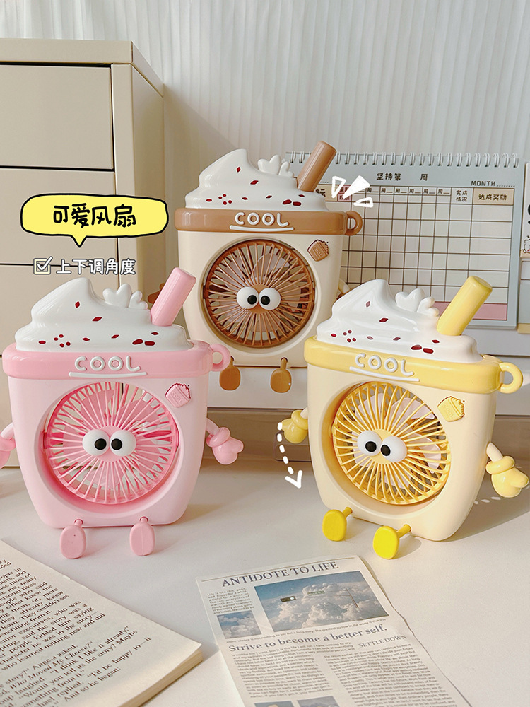 萌物冰淇淋风扇USB充电便携式桌面台式三档小电扇带支架户外风扇