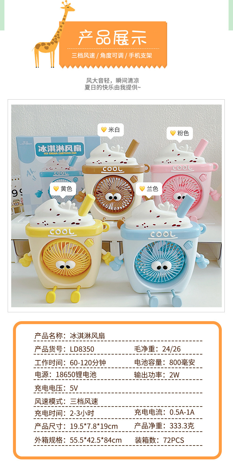 【产品名称】卡通冰淇淋电风扇