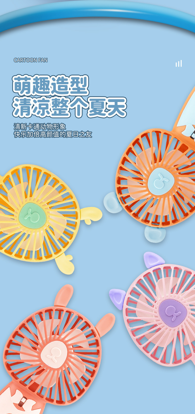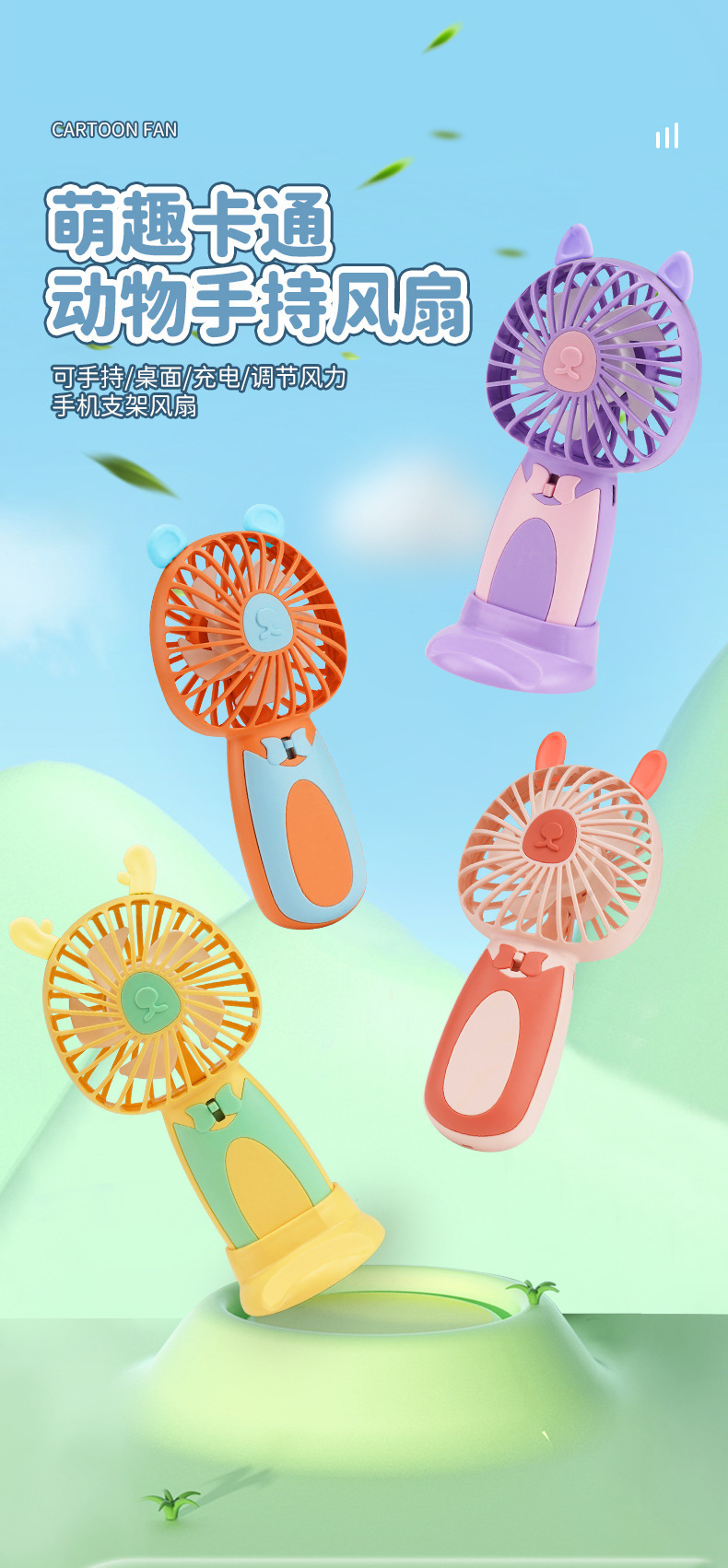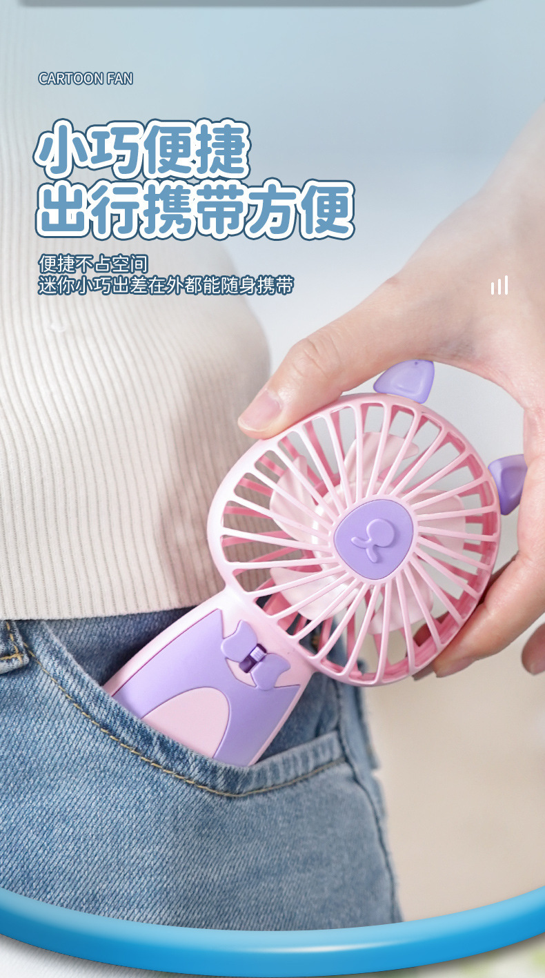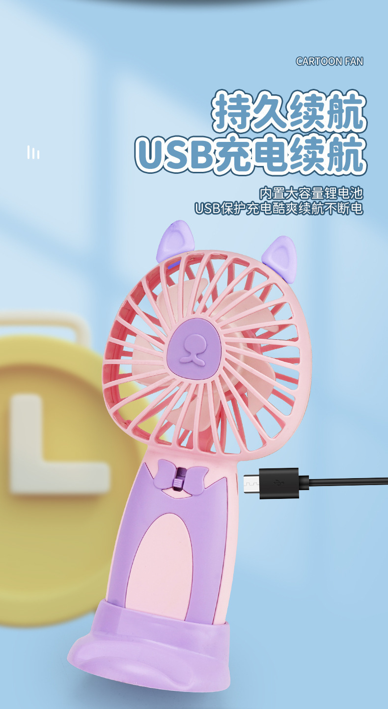 新款卡通萌宠手持充电风扇USB充电户外夏季手持便携口袋风扇礼品