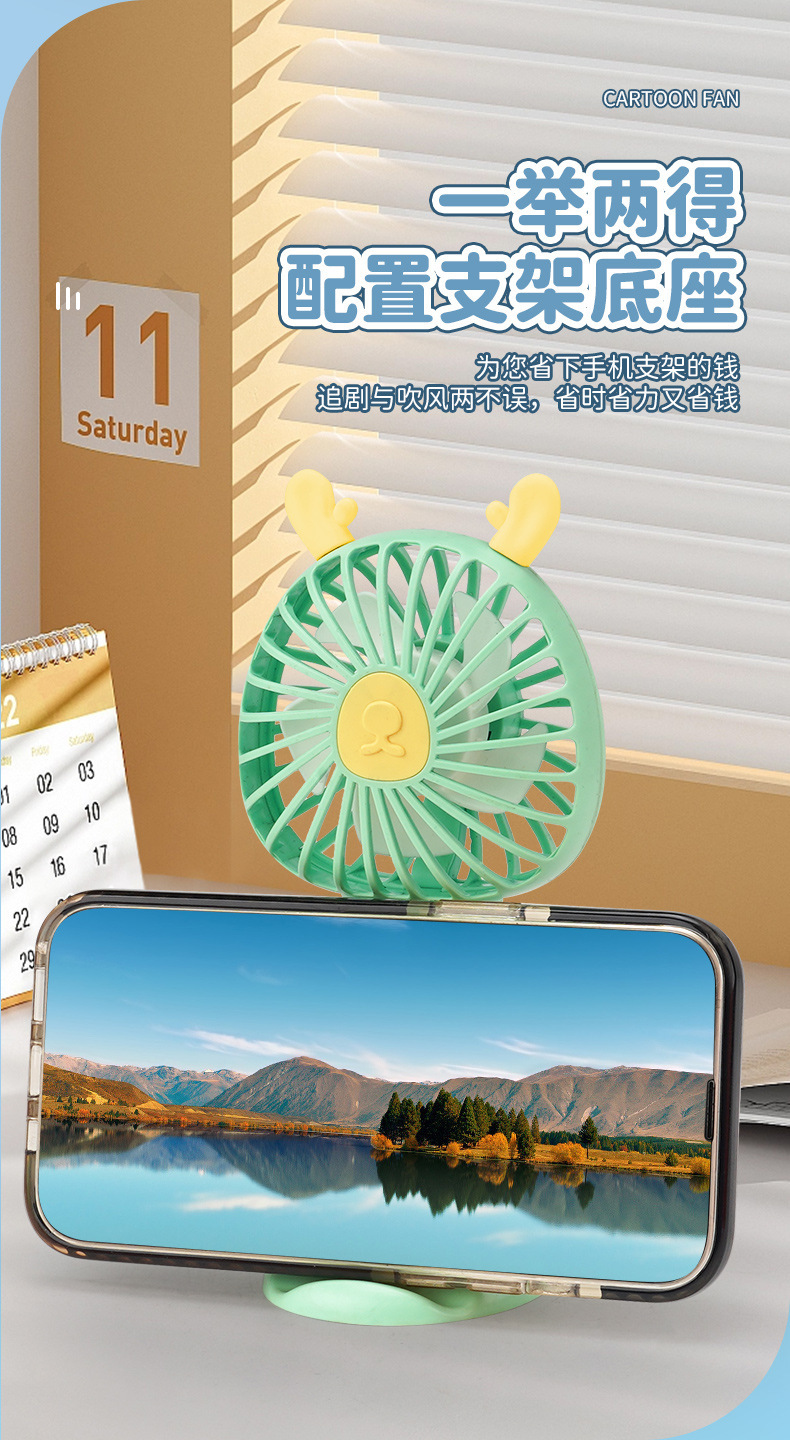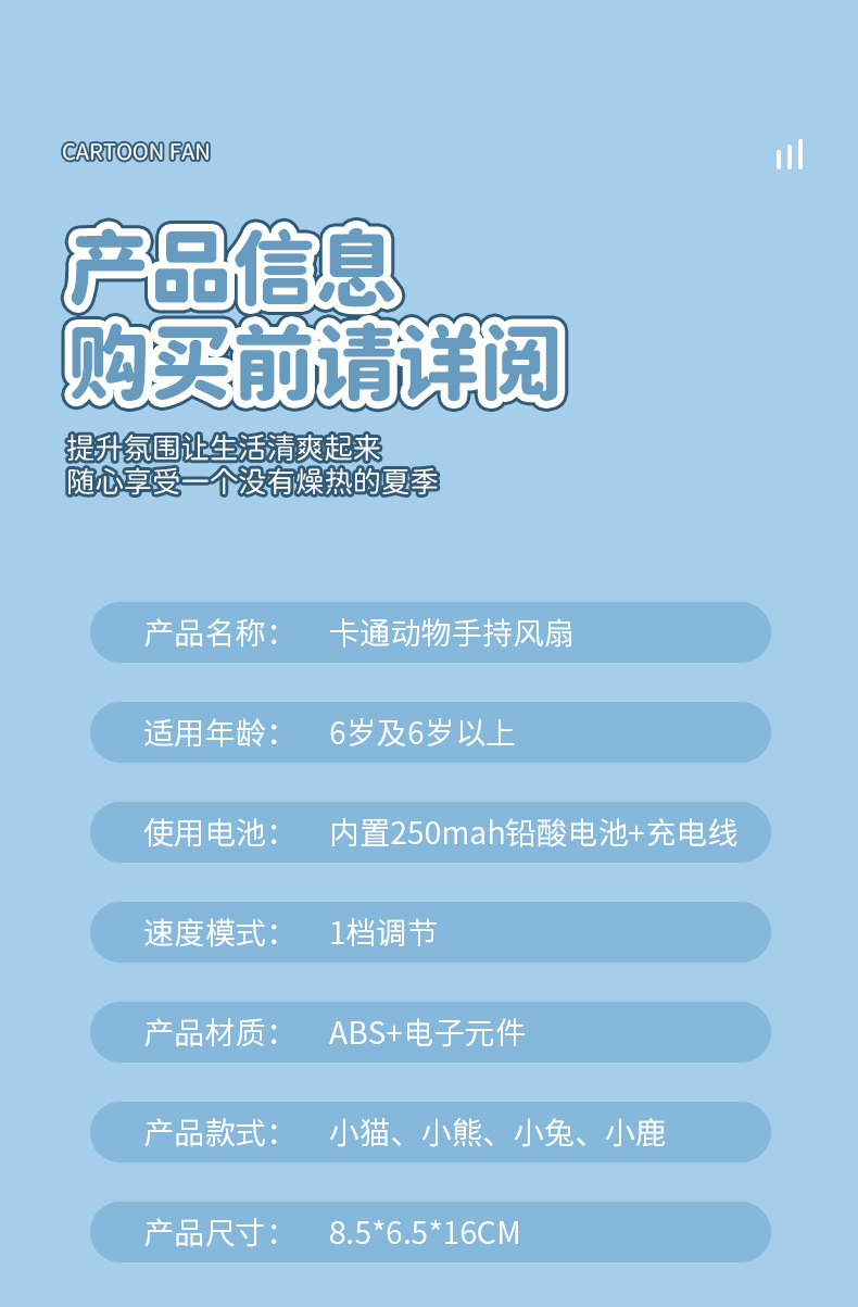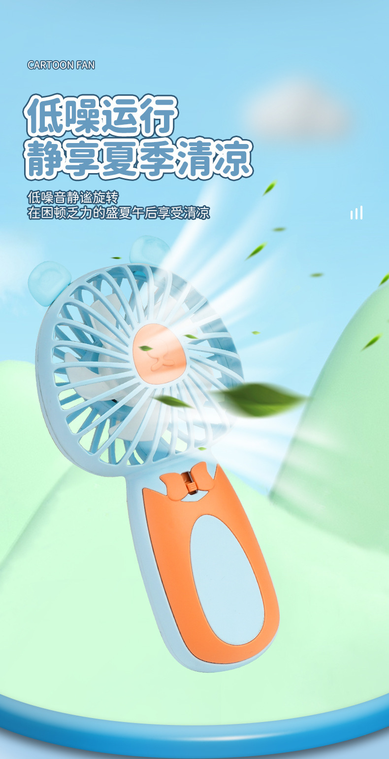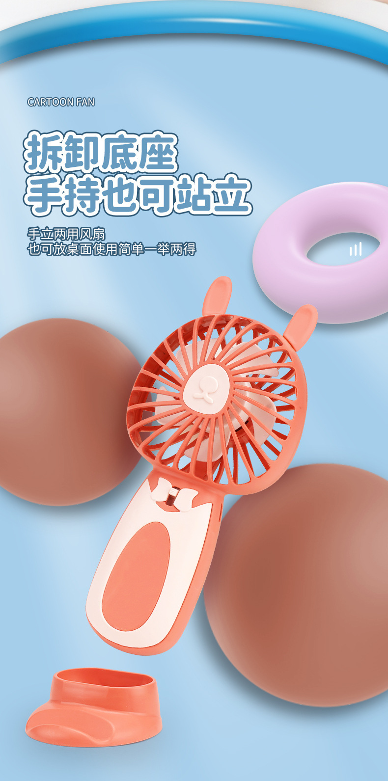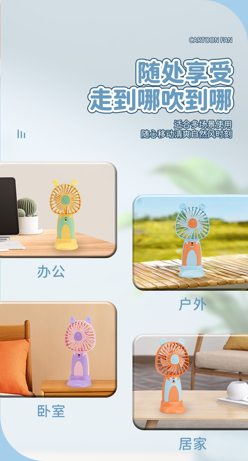 新款卡通萌宠手持充电风扇USB充电户外夏季手持便携口袋风扇礼品