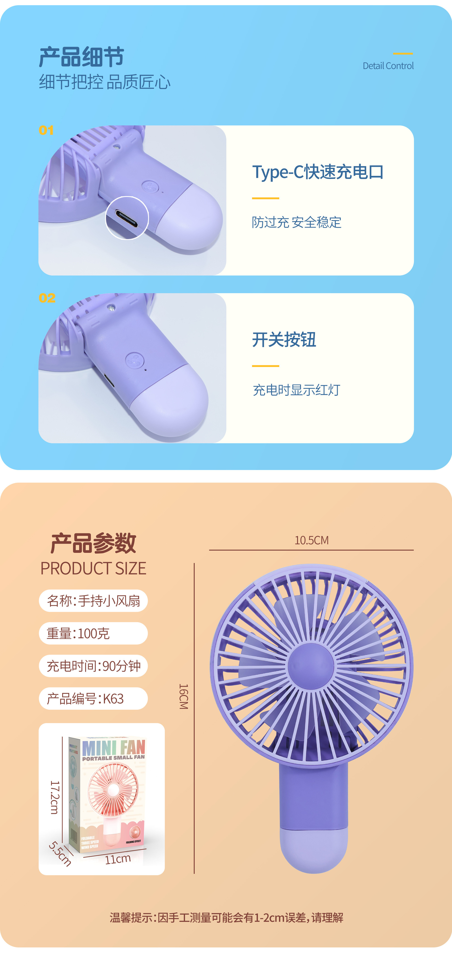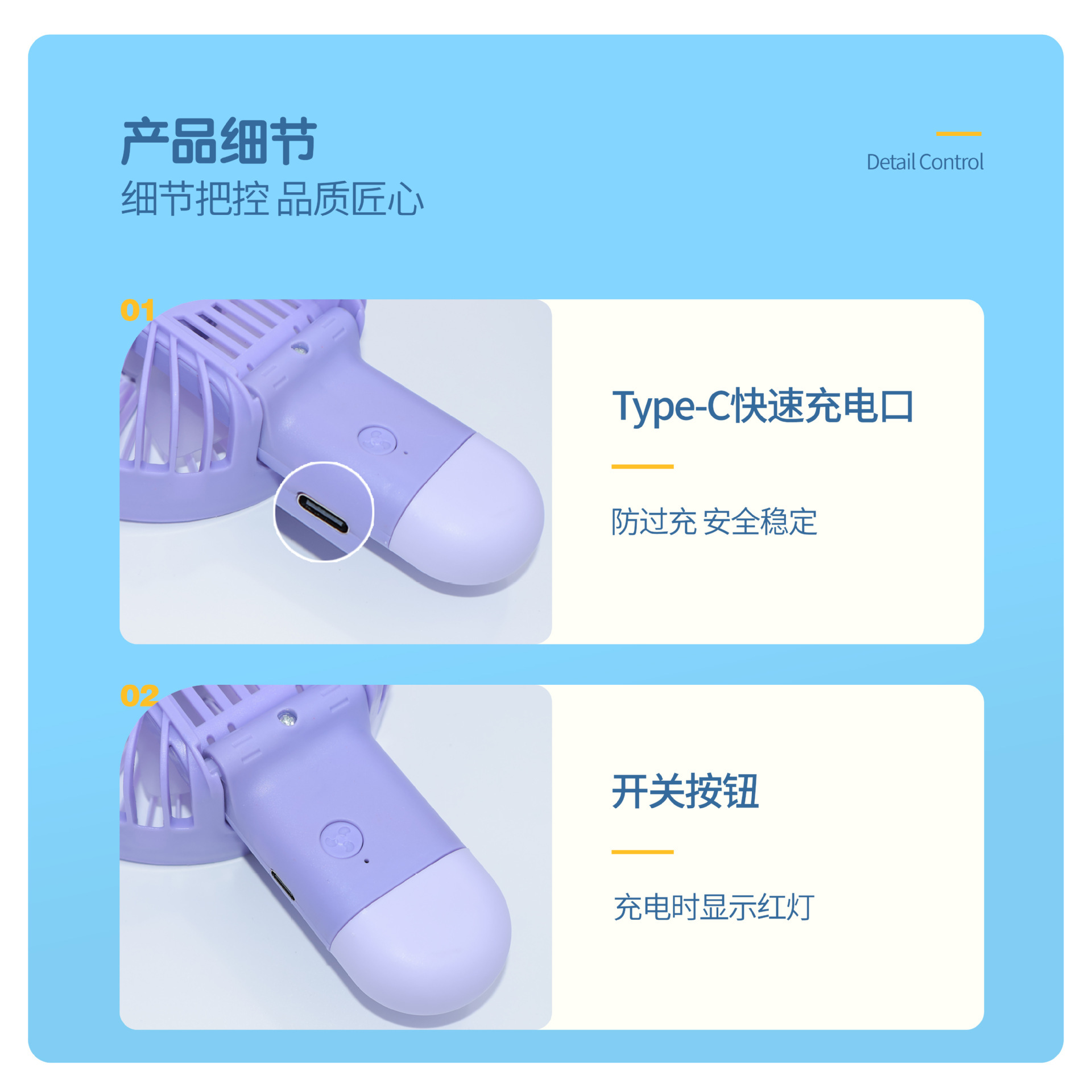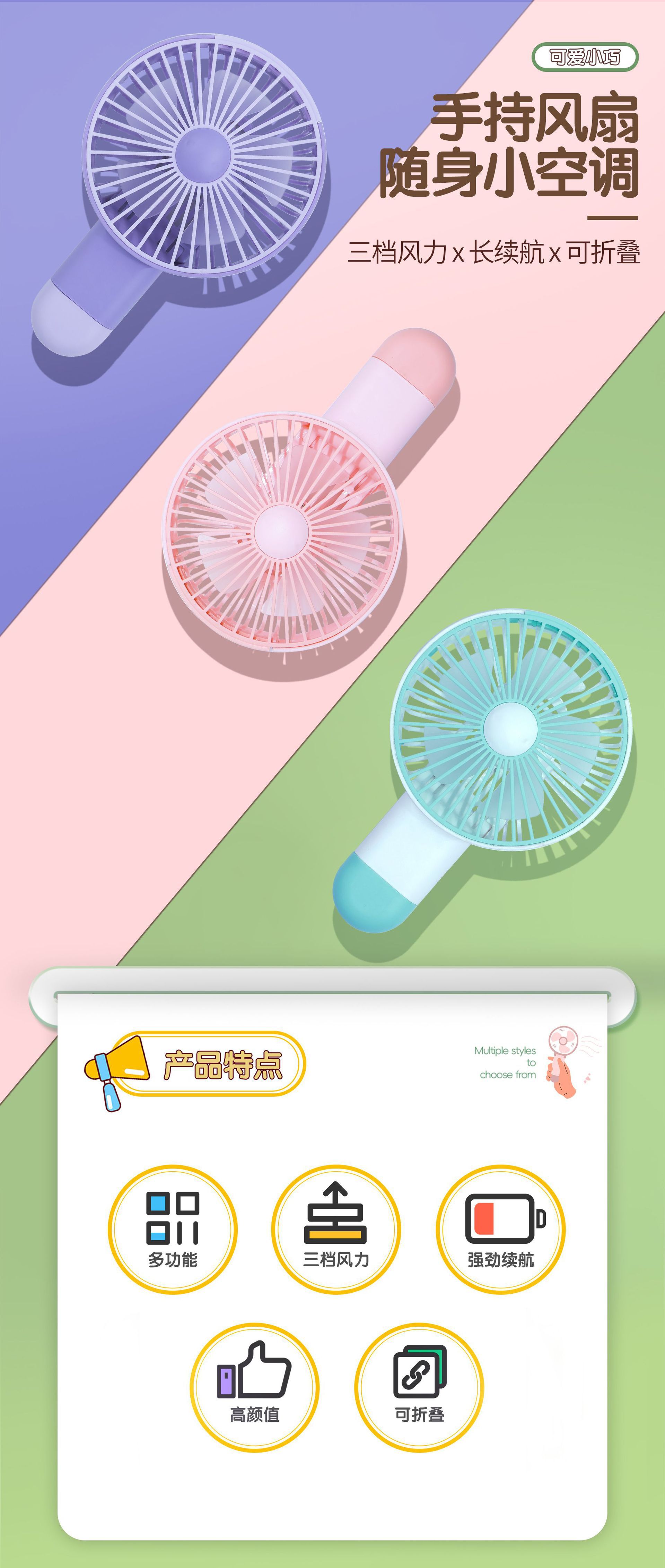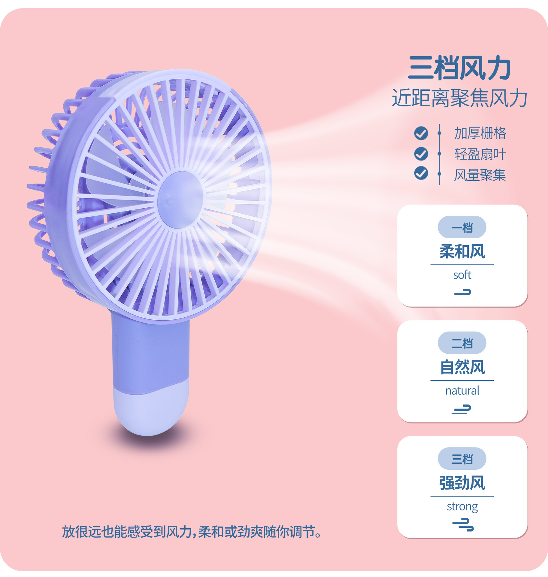 手持折叠充电风扇三档风力便携小风扇桌面电扇迷你学生电动风扇
