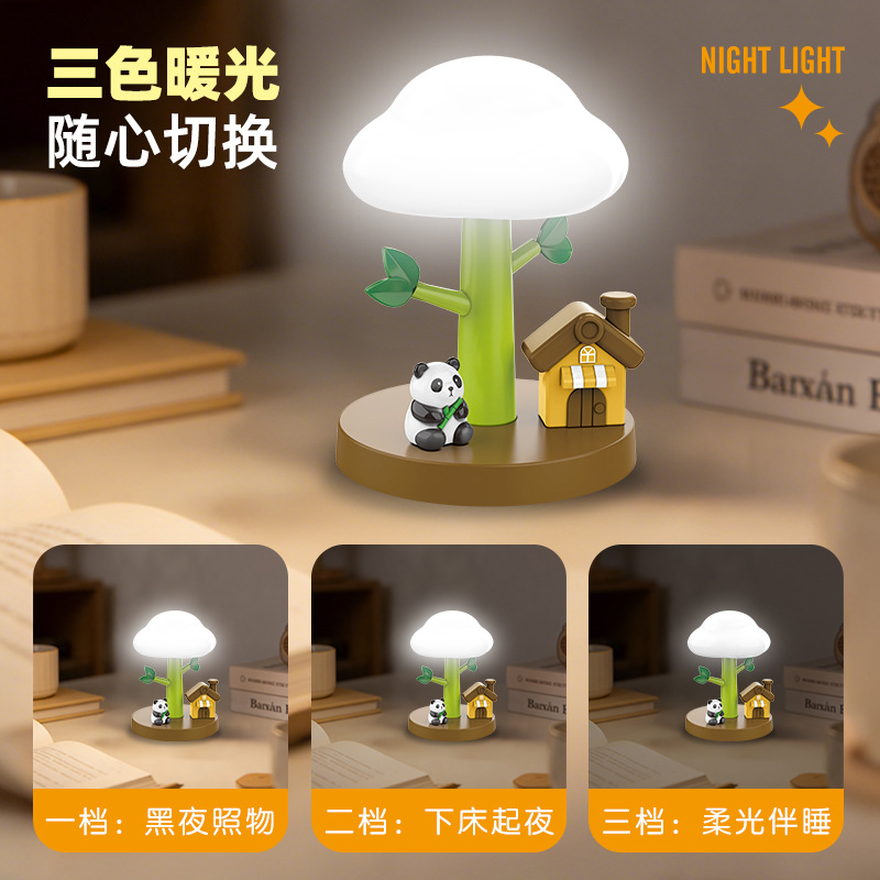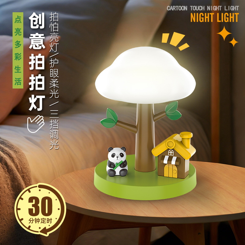 高颜值熊猫小夜灯拍拍灯卧室睡眠床头灯台灯婴儿喂奶夜间氛围灯