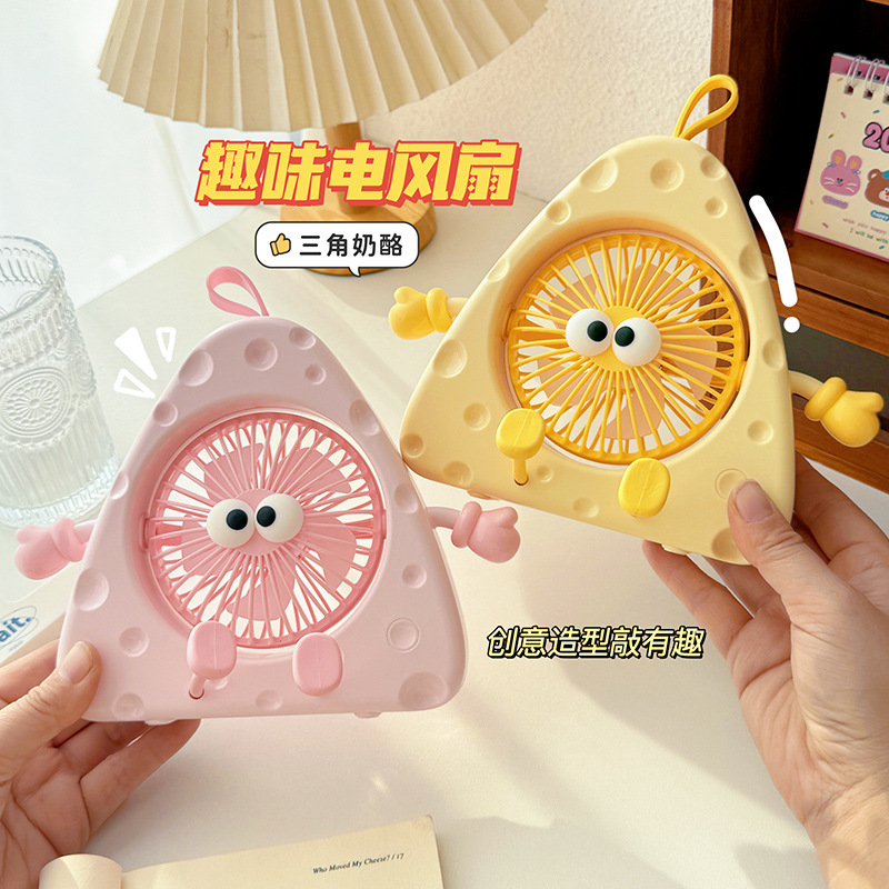 热销可爱三角奶酪小型迷你风扇USB充电便携式电风扇办公桌上风扇