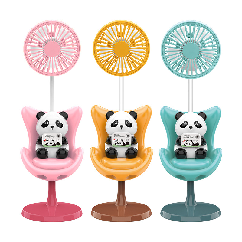 创意新款卡通奶酪熊沙发椅风扇三档迷你熊猫电风扇USB充电便携式