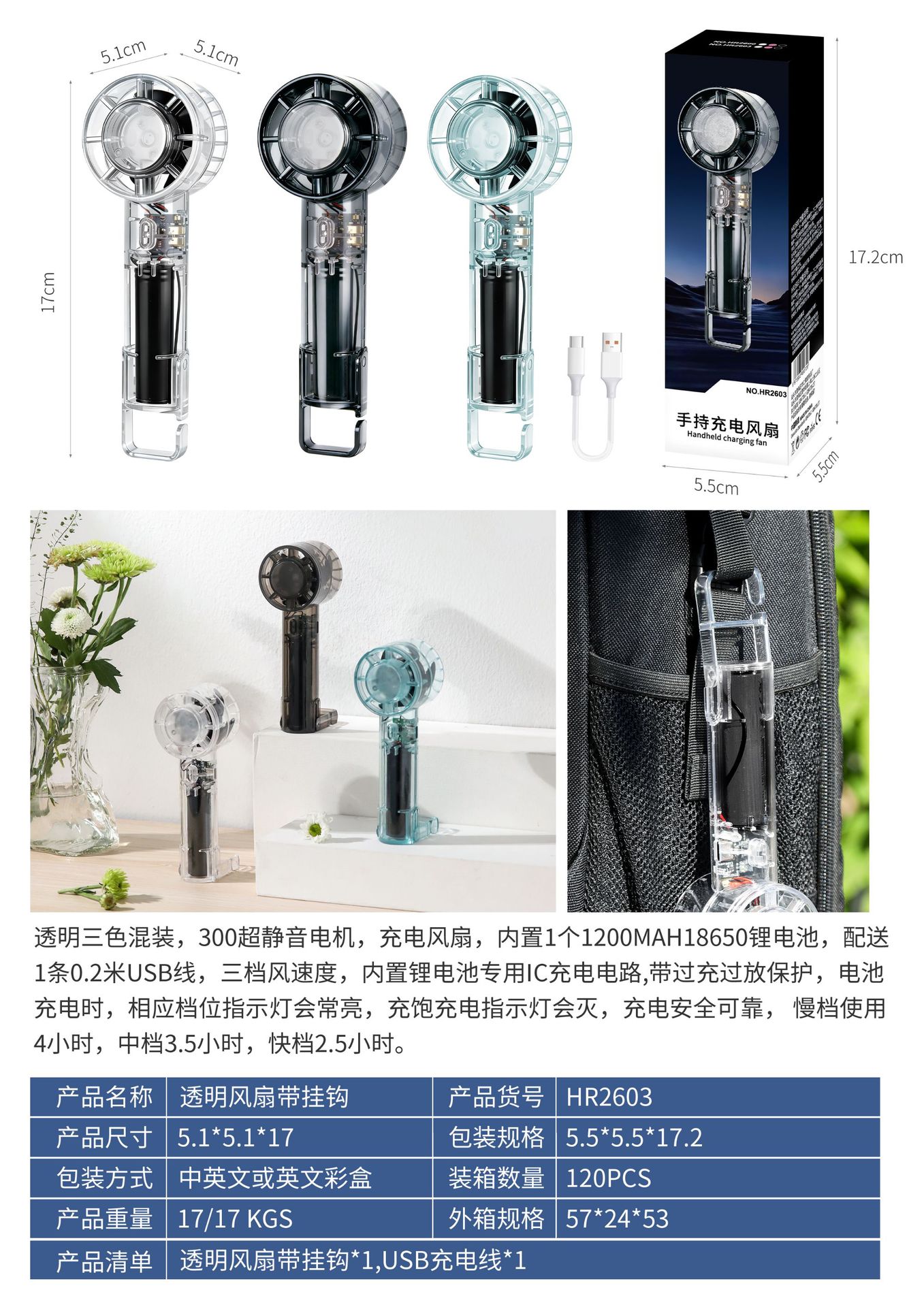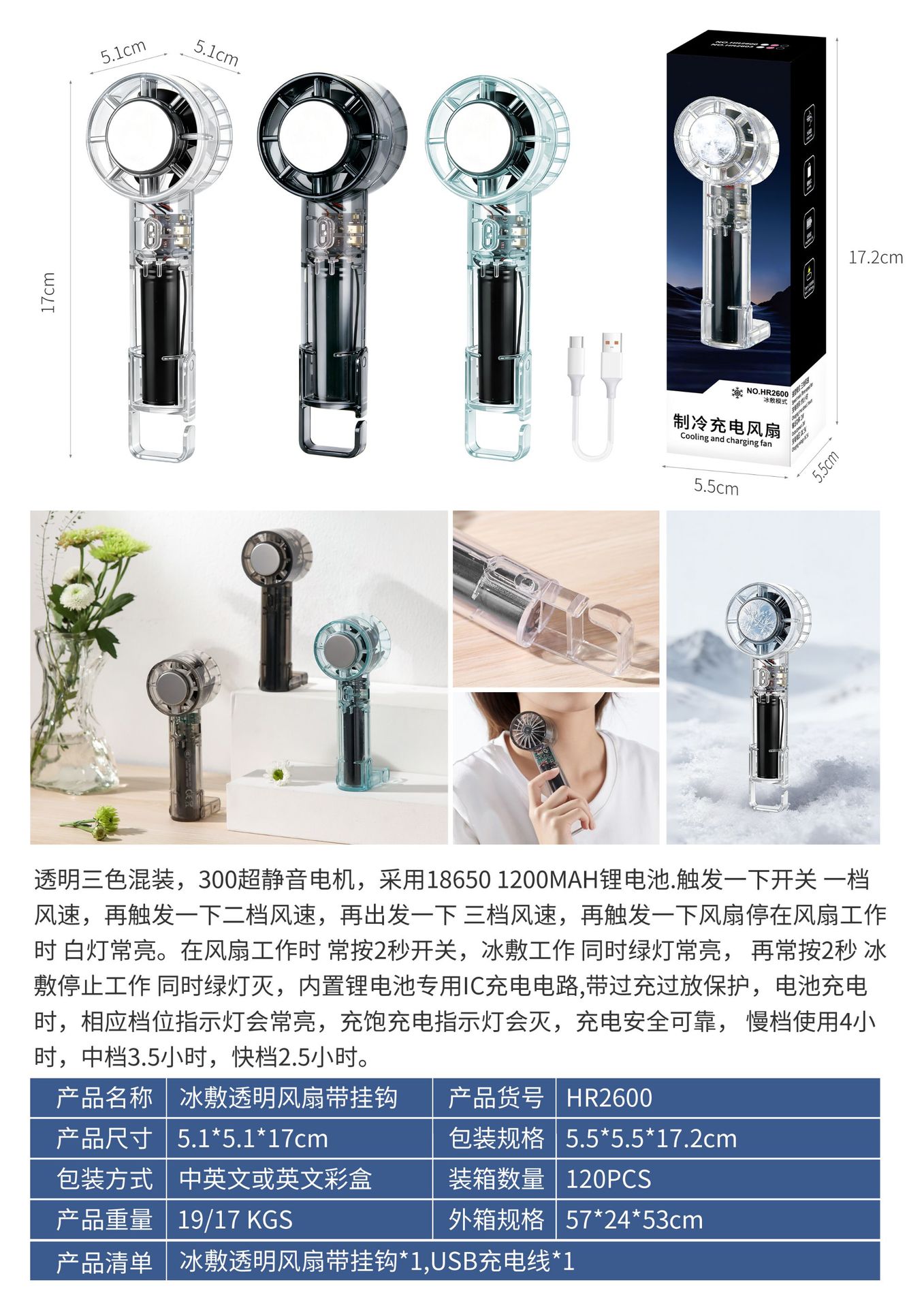 新款透明手持制冷半导体风扇便携式随身小型迷你usb充电迷你风扇