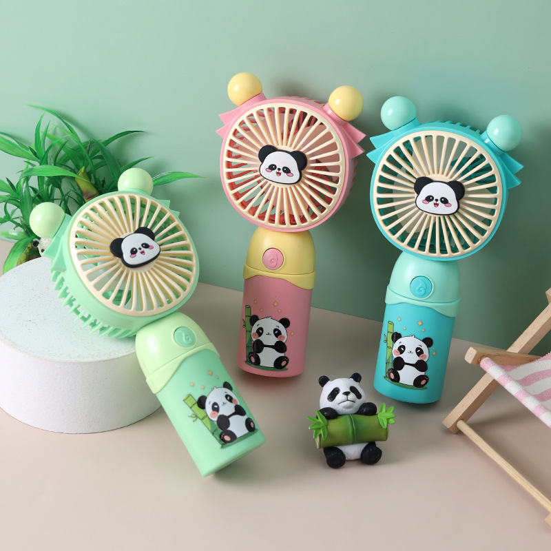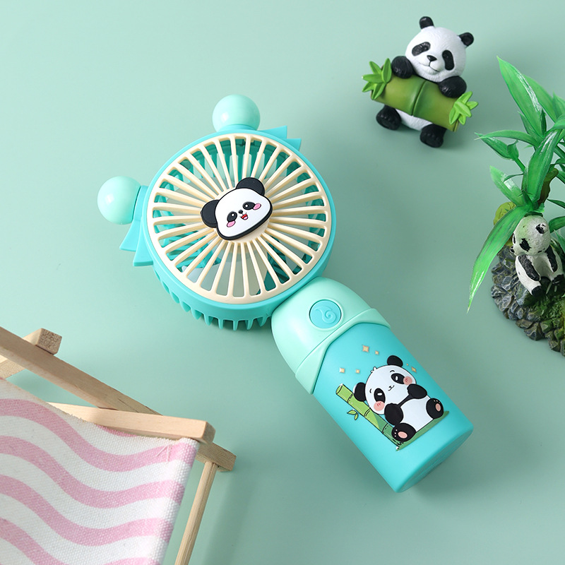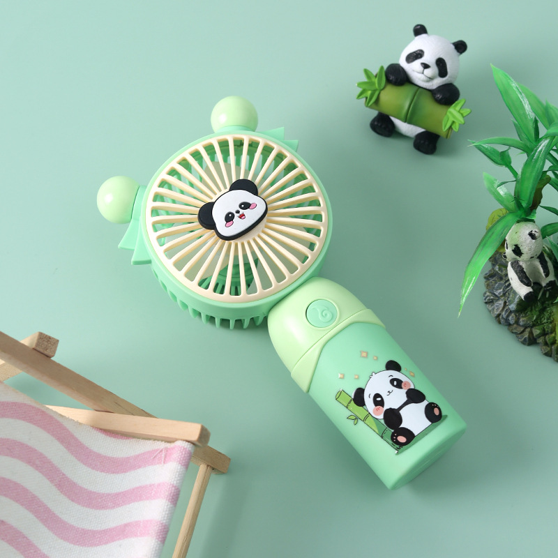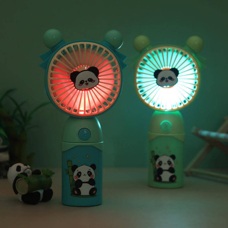 创意卡通熊猫手持迷你风扇USB充电便携式五档风速调节灯光小风扇