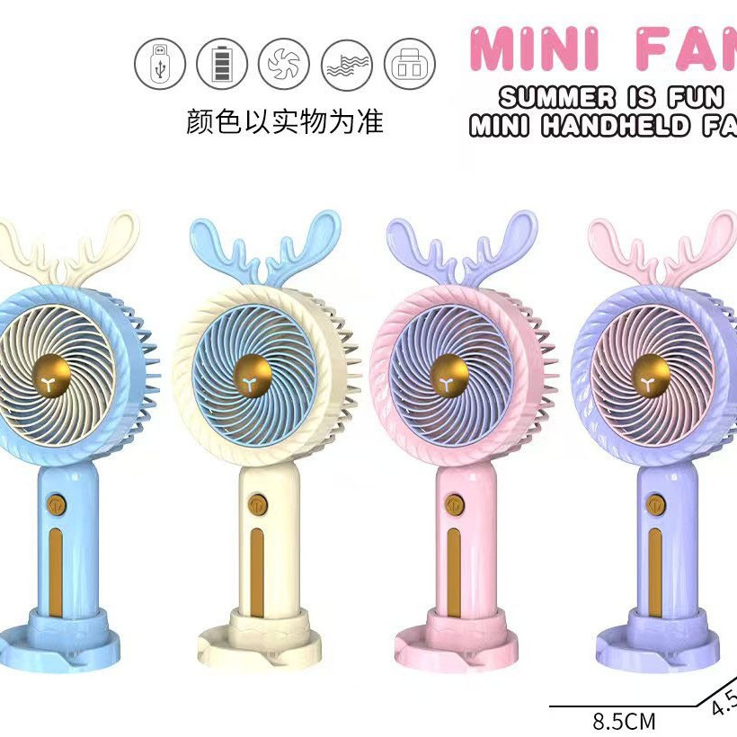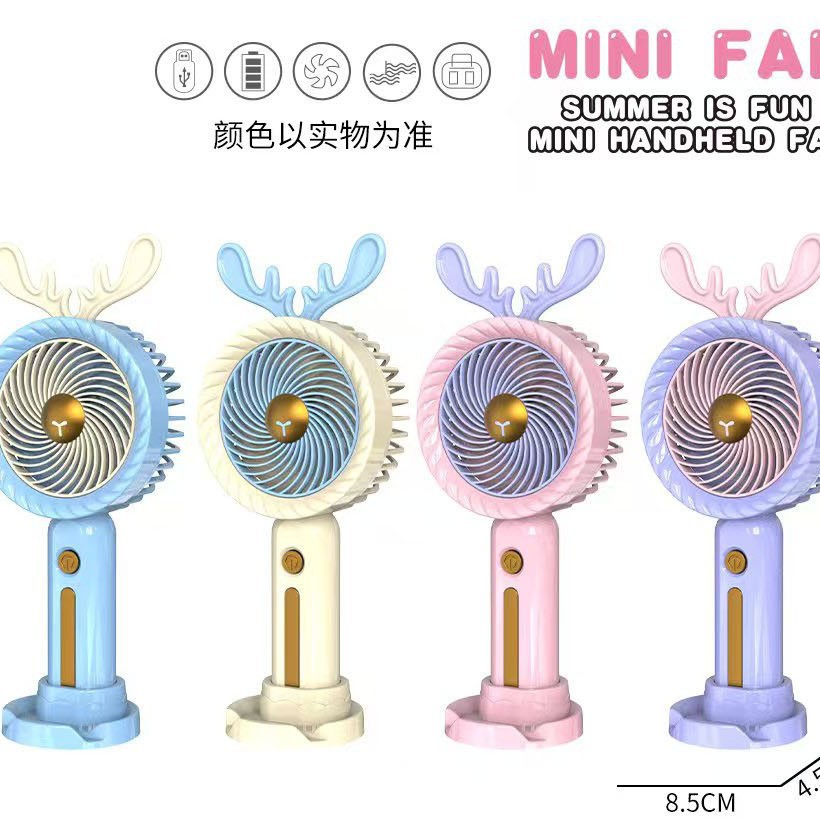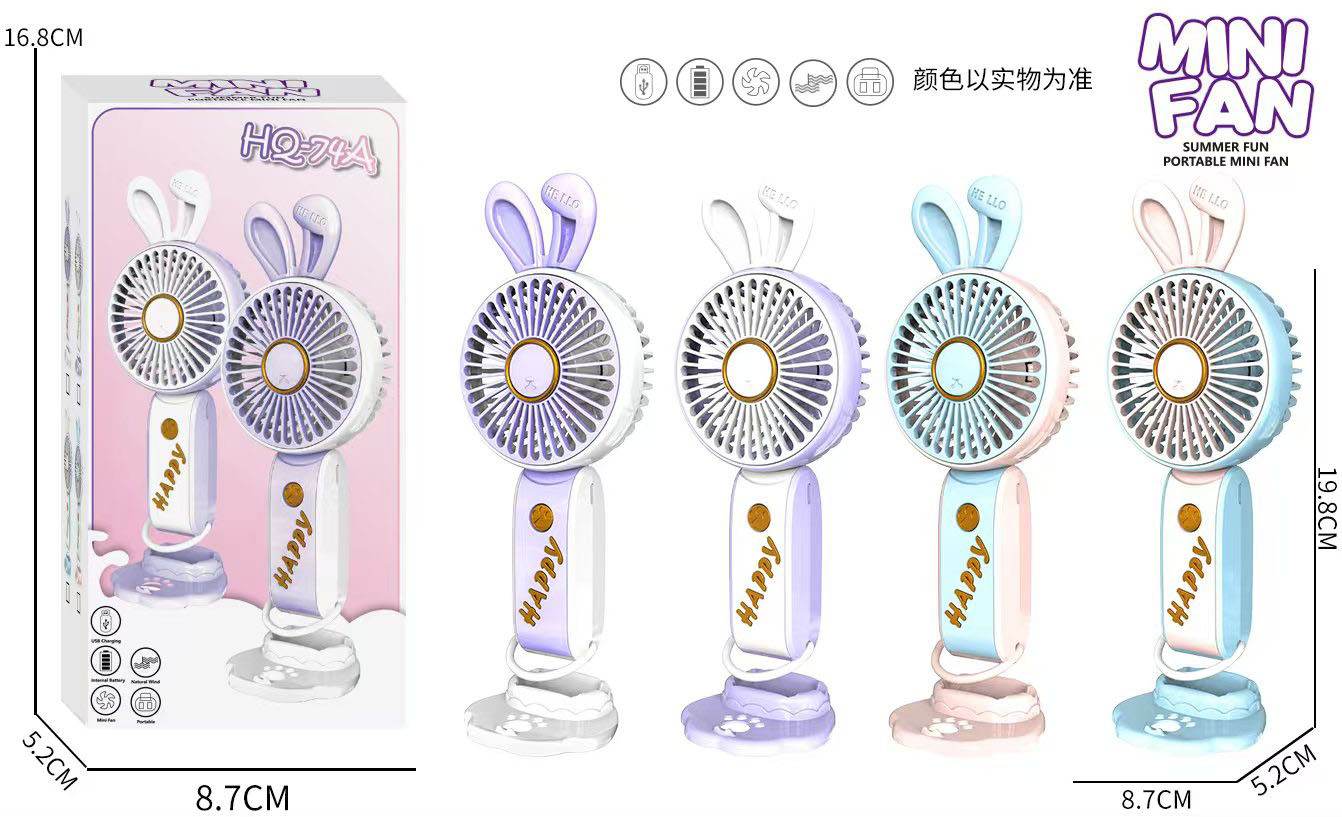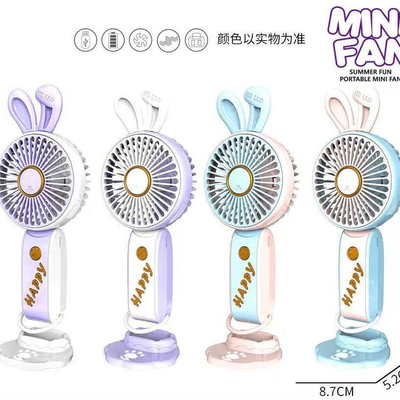 六一儿童节活动礼品手持风扇便带底座桌面USB充电风扇可印制logo