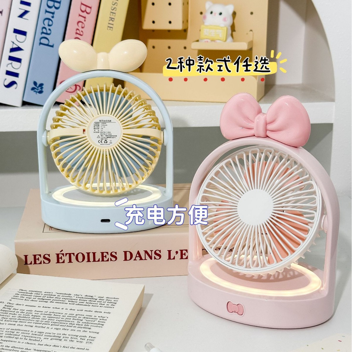 新款ins轻巧蝴蝶结桌面立式风扇便携充电带LED灯光三档调速小风扇