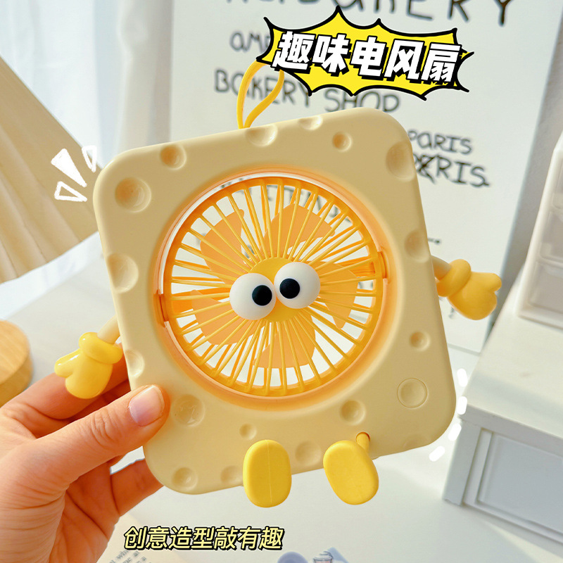 可爱桌面台式方形奶酪卡通风扇USB电风扇高颜值便携式三档小风扇