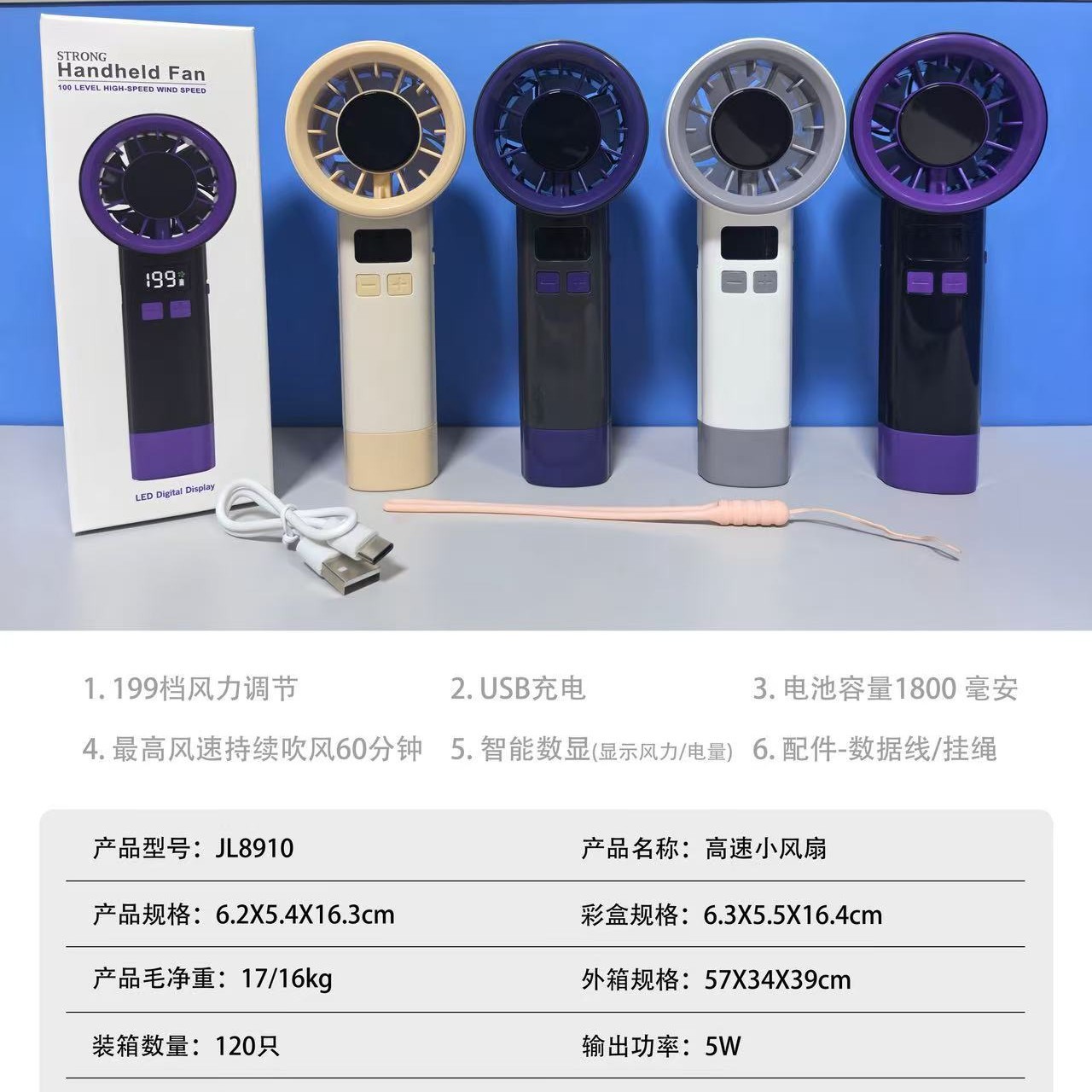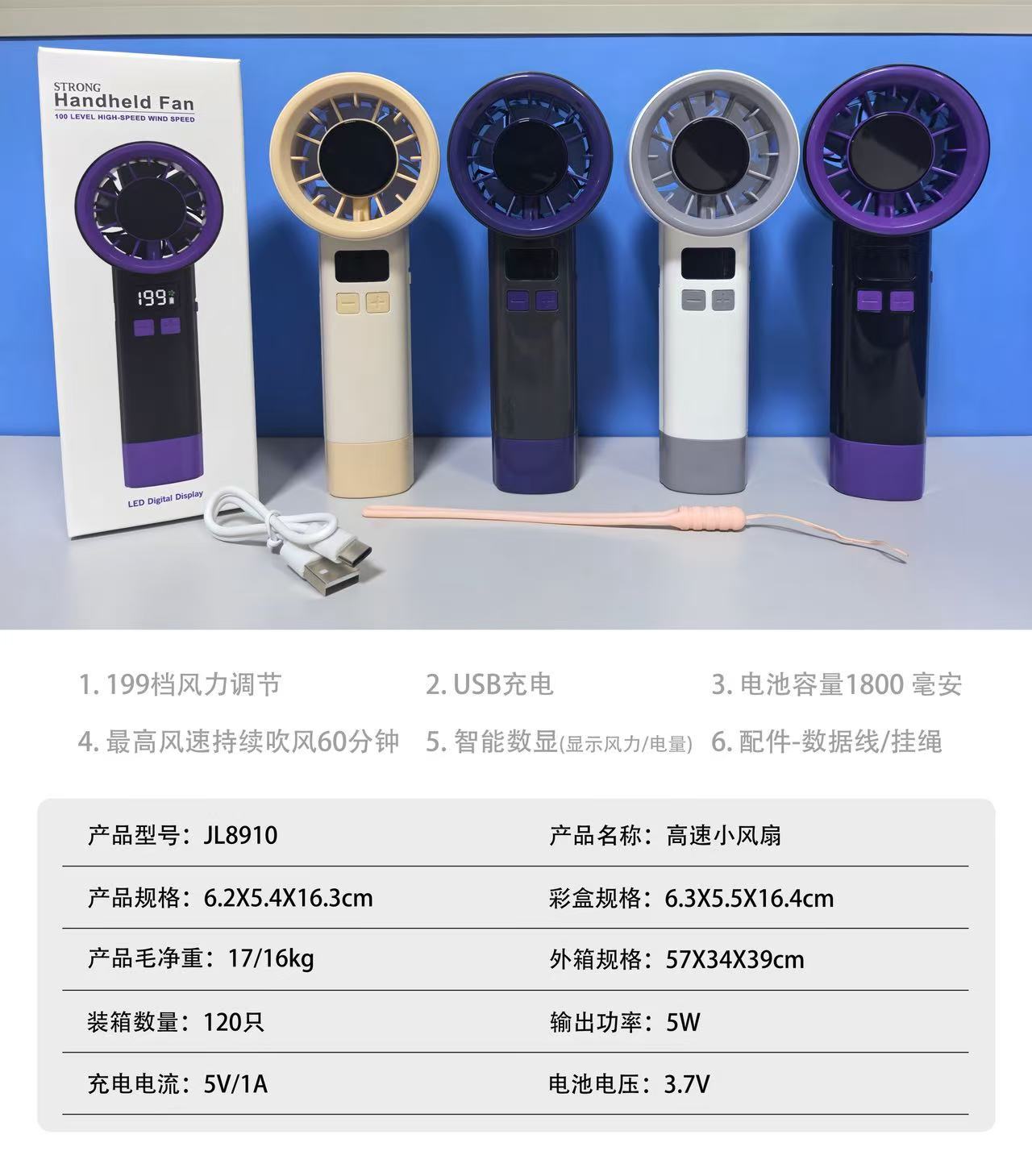 2026新款高速手持小风扇usb便携式迷你户外涡轮暴力风扇数显风扇