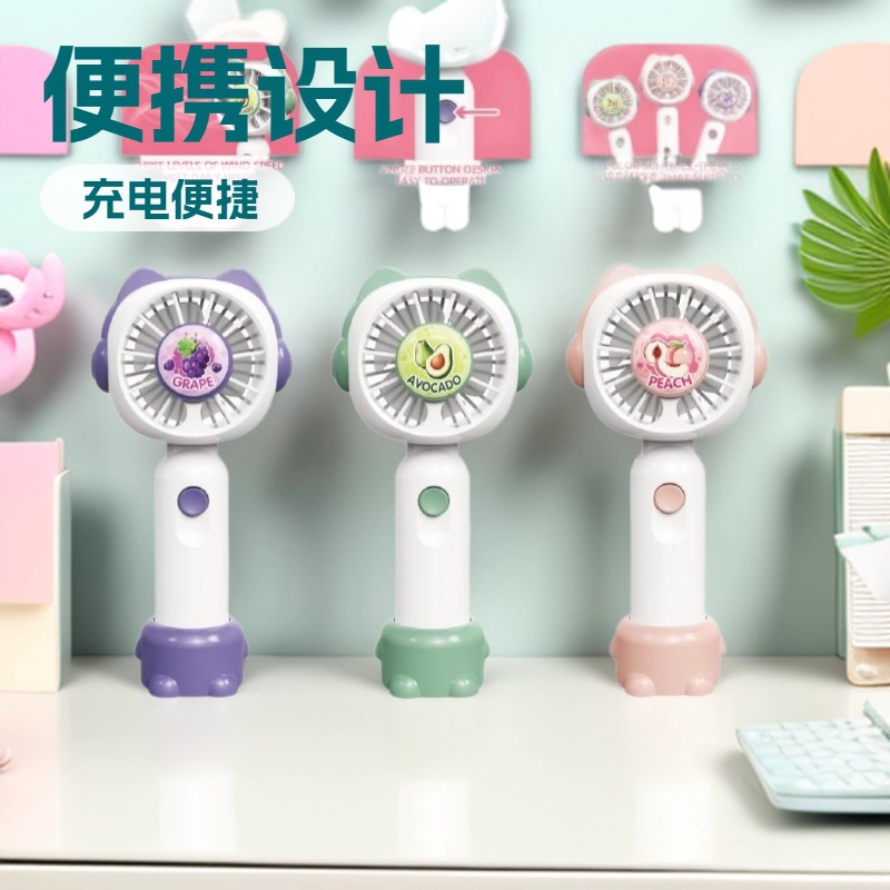 东南亚热卖夏季创意新款水果手持风扇USB充电式带底座桌面小风扇