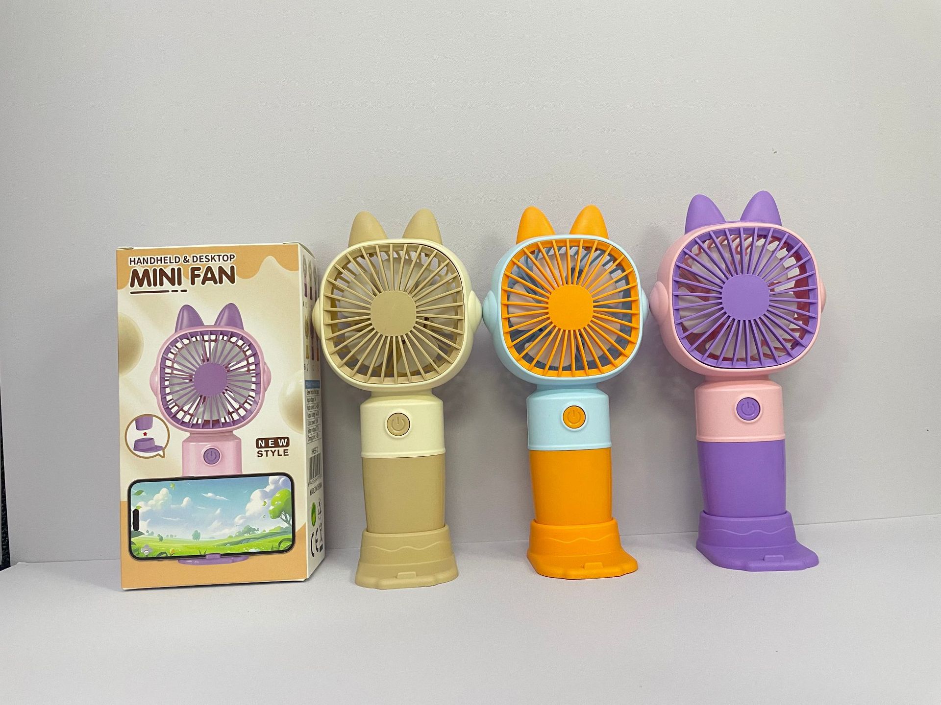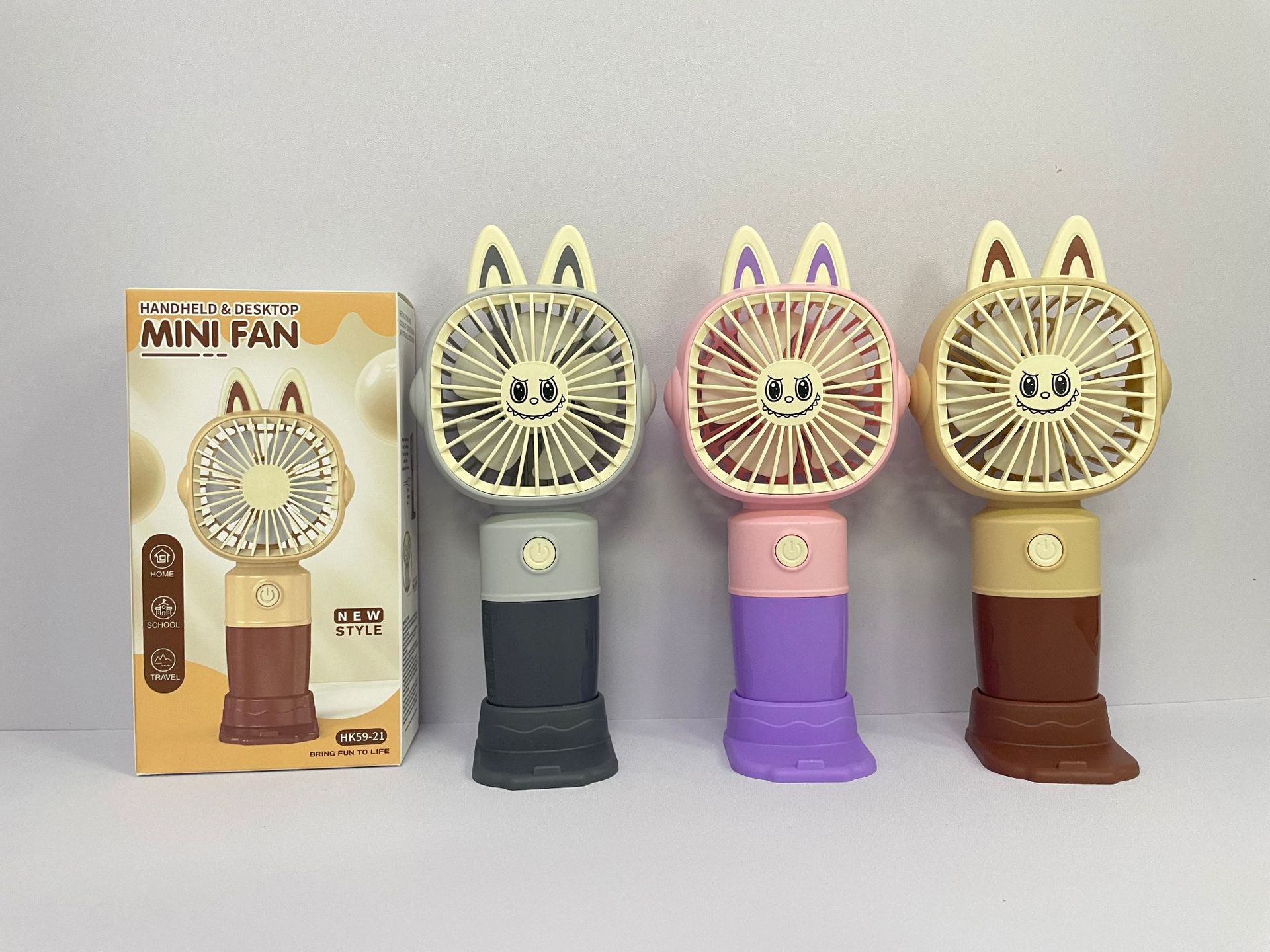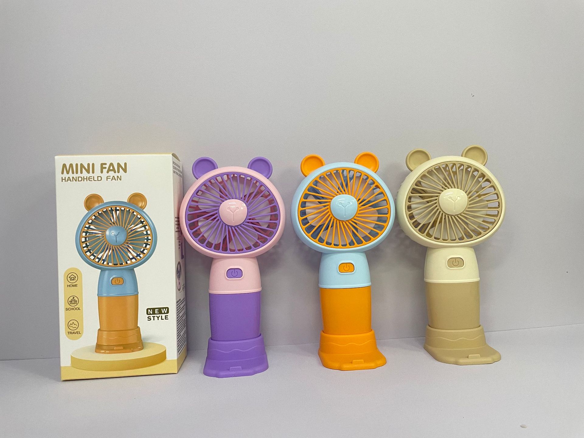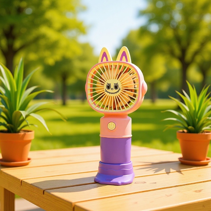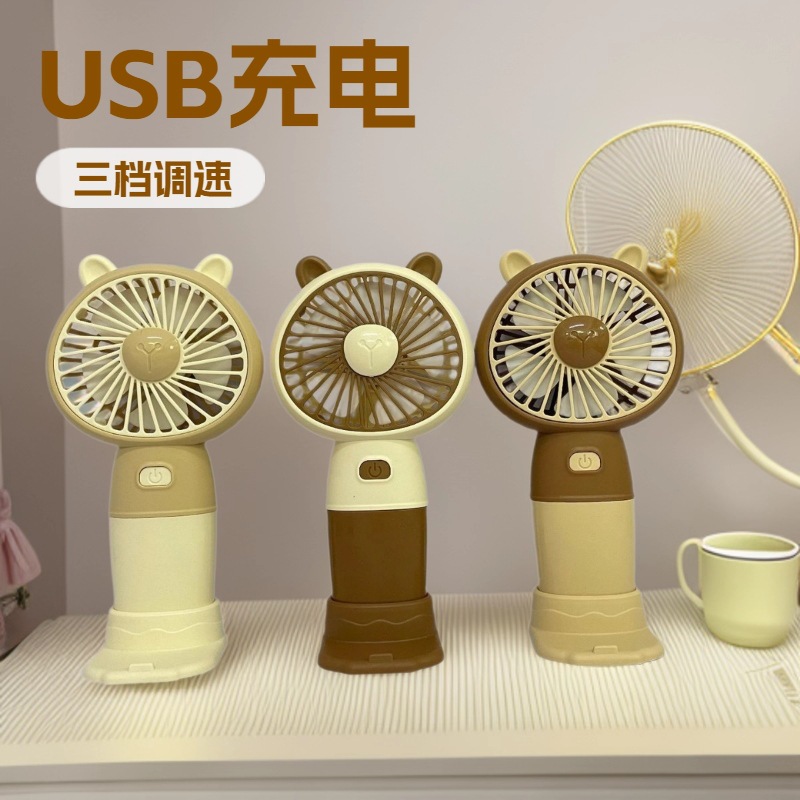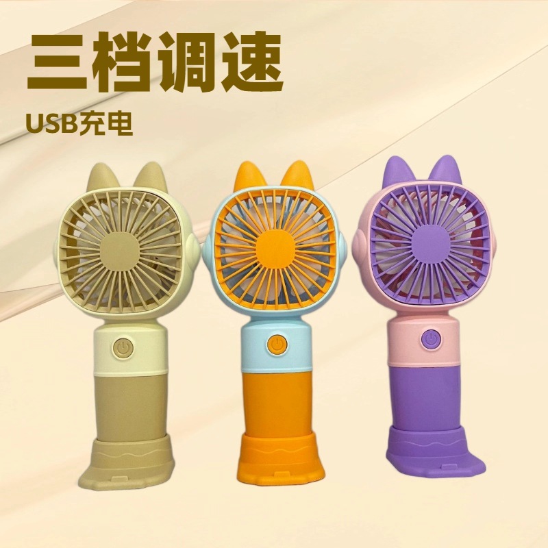 新款卡通带底座小风扇USB充电迷你三档便携式户外出游电扇批发