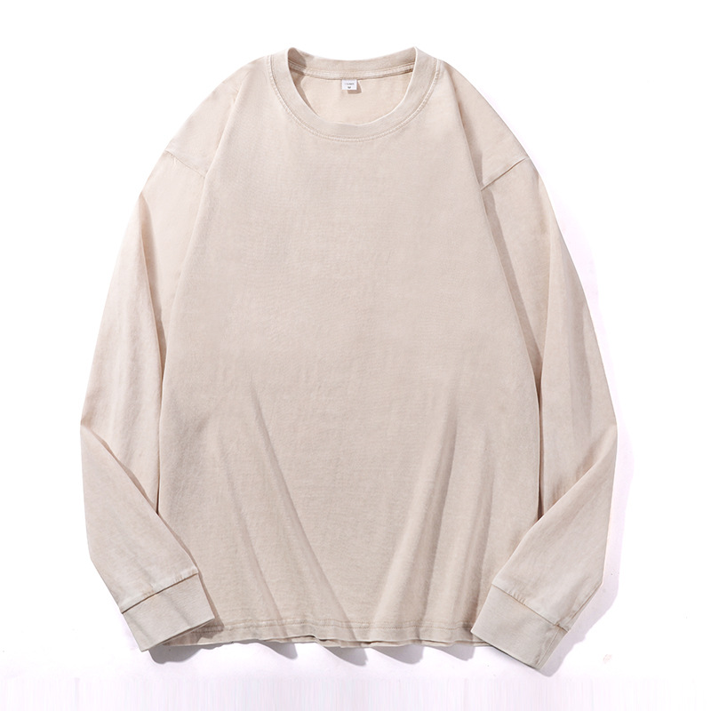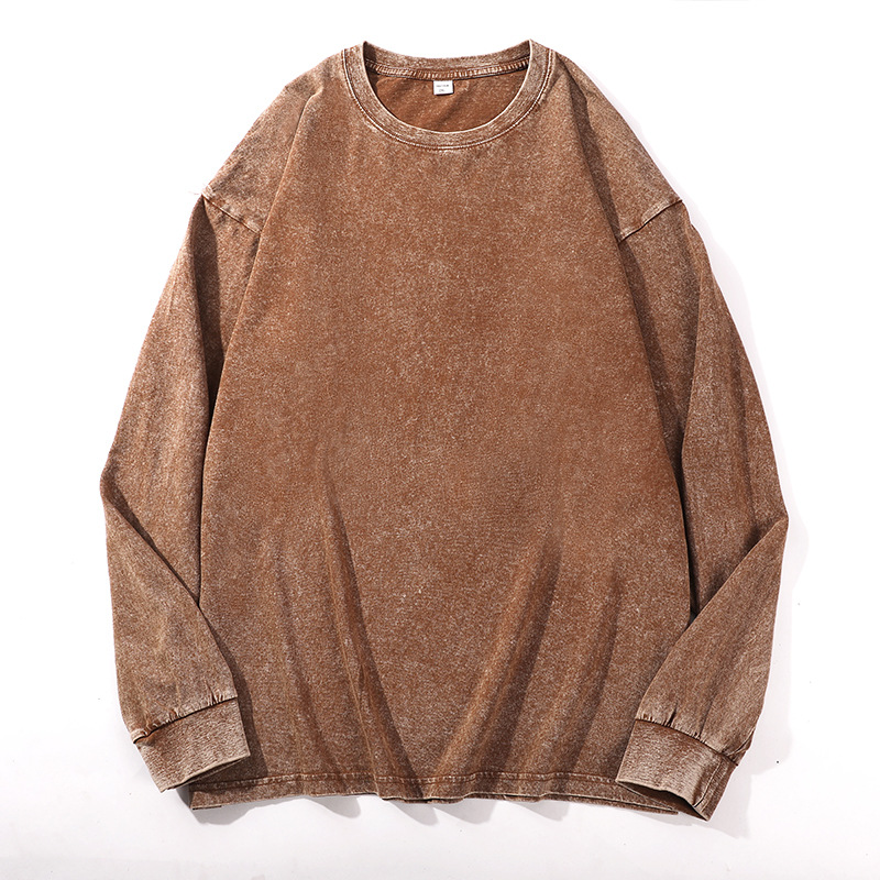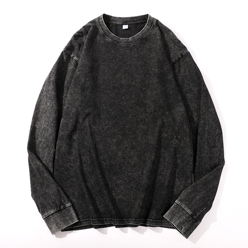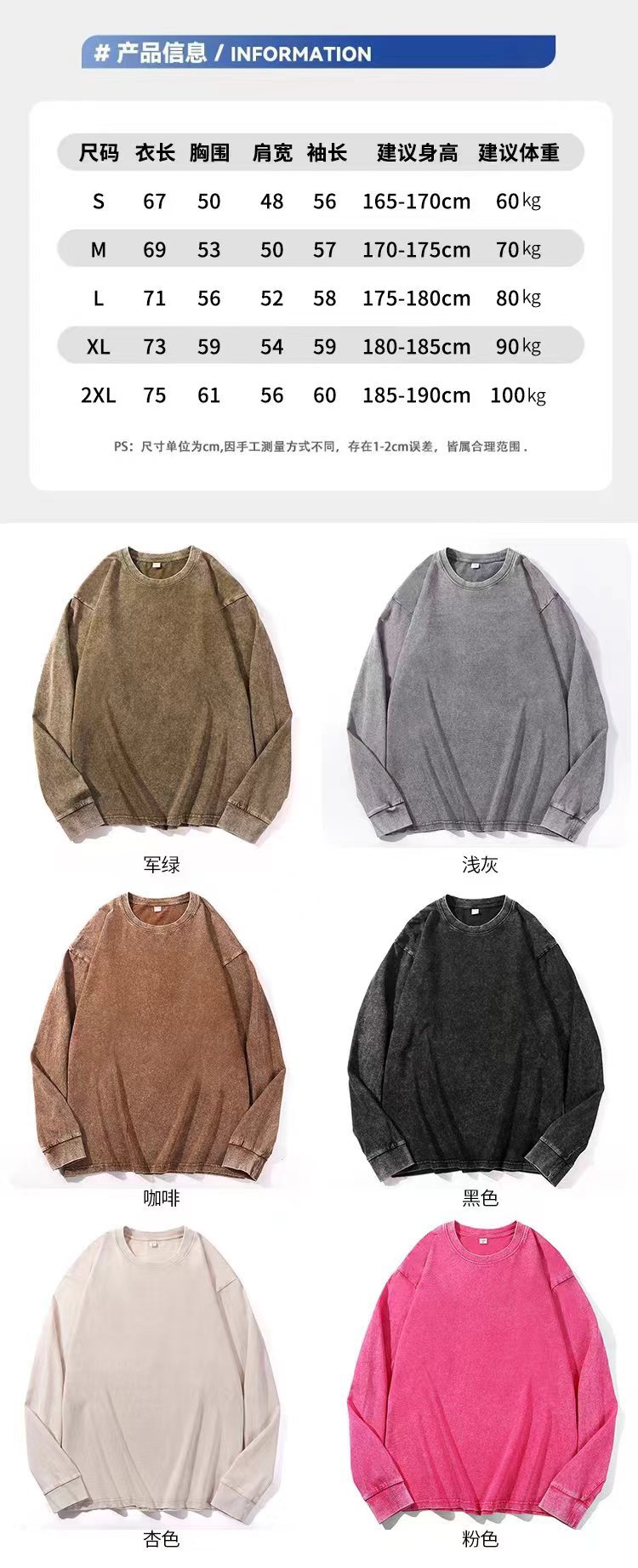 水洗做旧长袖束口纯棉跨境彩色秋衣美式复古男女通用大码文艺复古