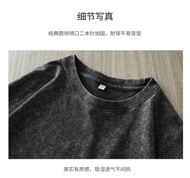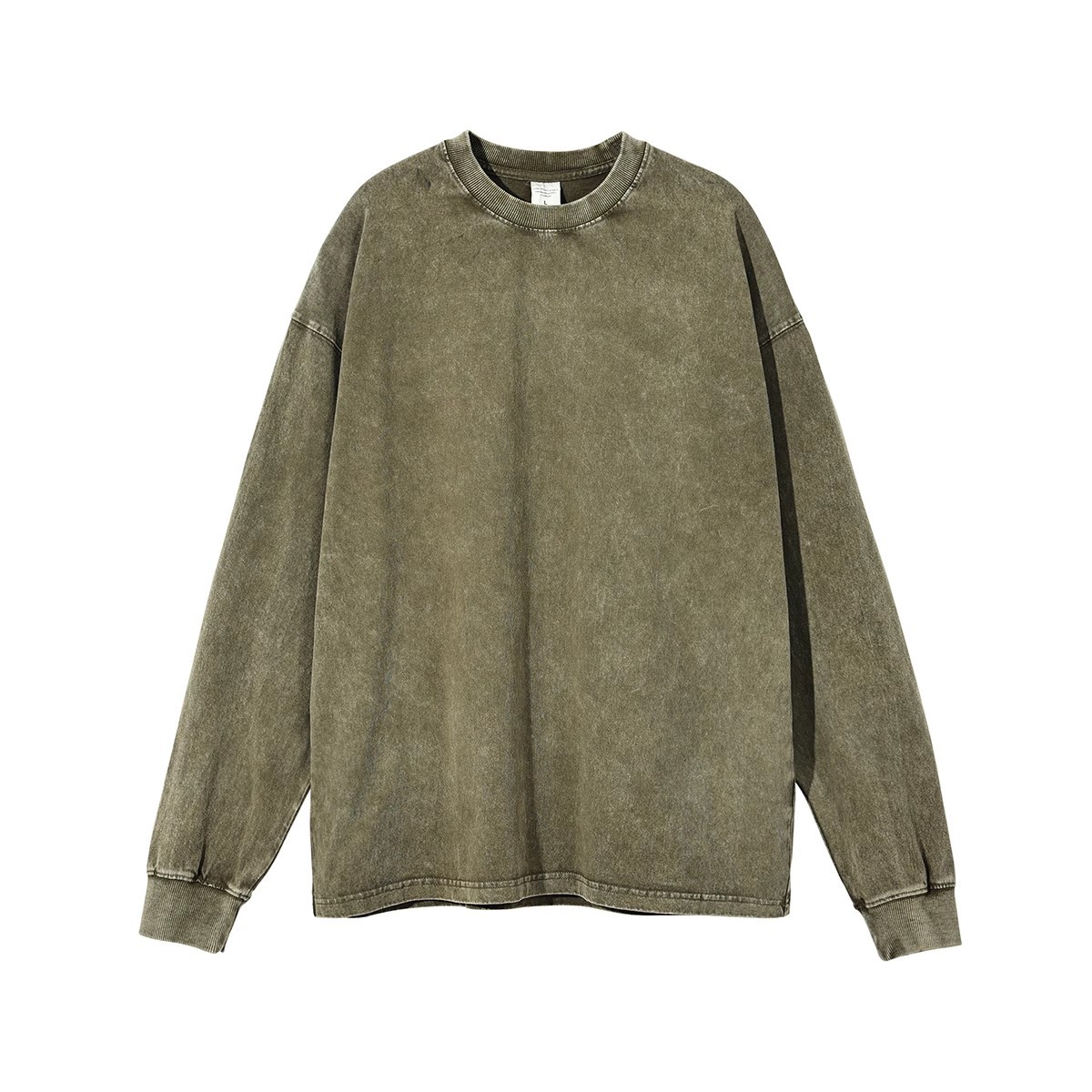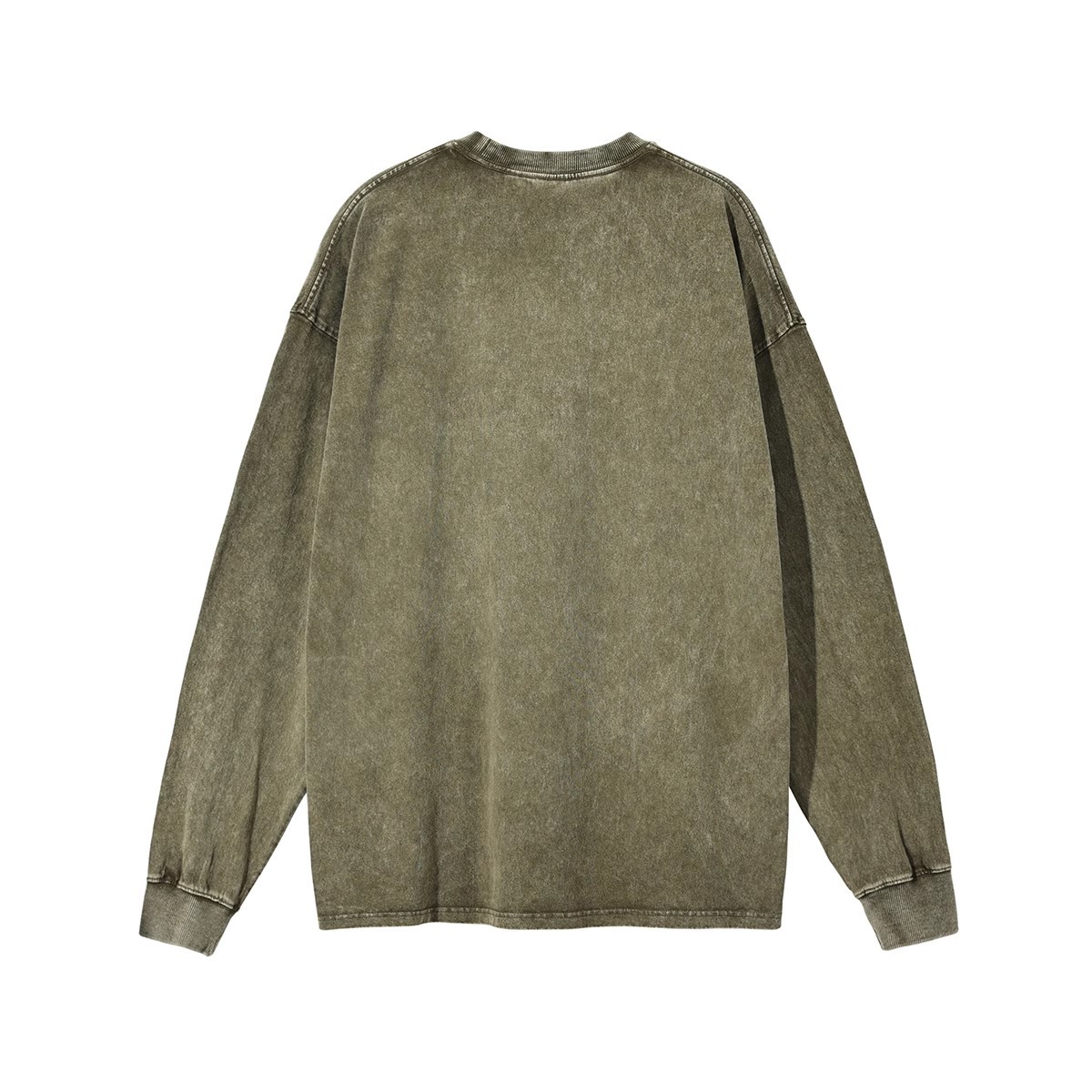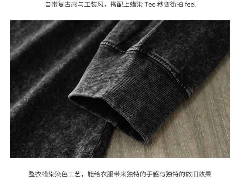 水洗做旧长袖束口纯棉跨境彩色秋衣美式复古男女通用大码文艺复古