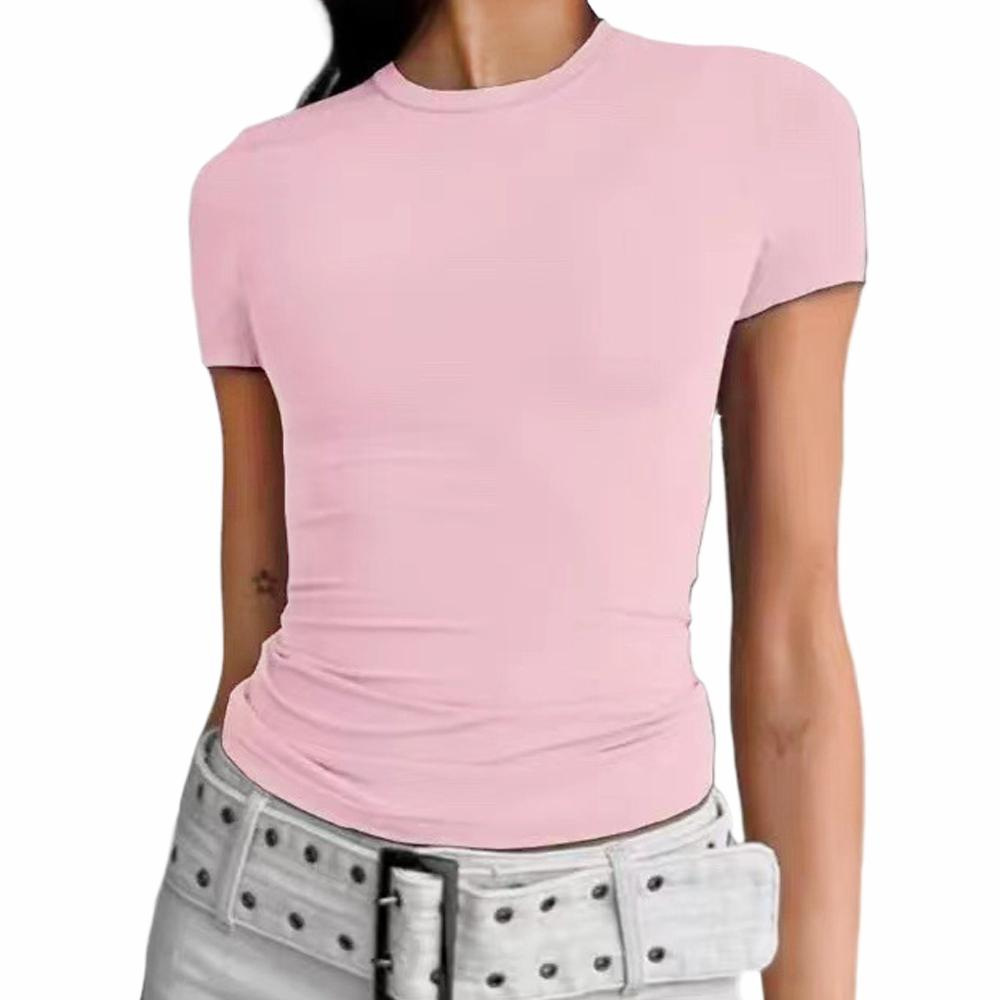 欧美热门女装休闲长袖t恤春秋纯色修身套头衫t恤女街装打底衫上衣