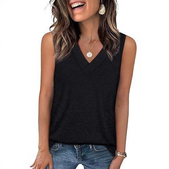亚马逊欧美外贸2025女式V领休闲宽松夏季新款纯色背心无袖衬衫