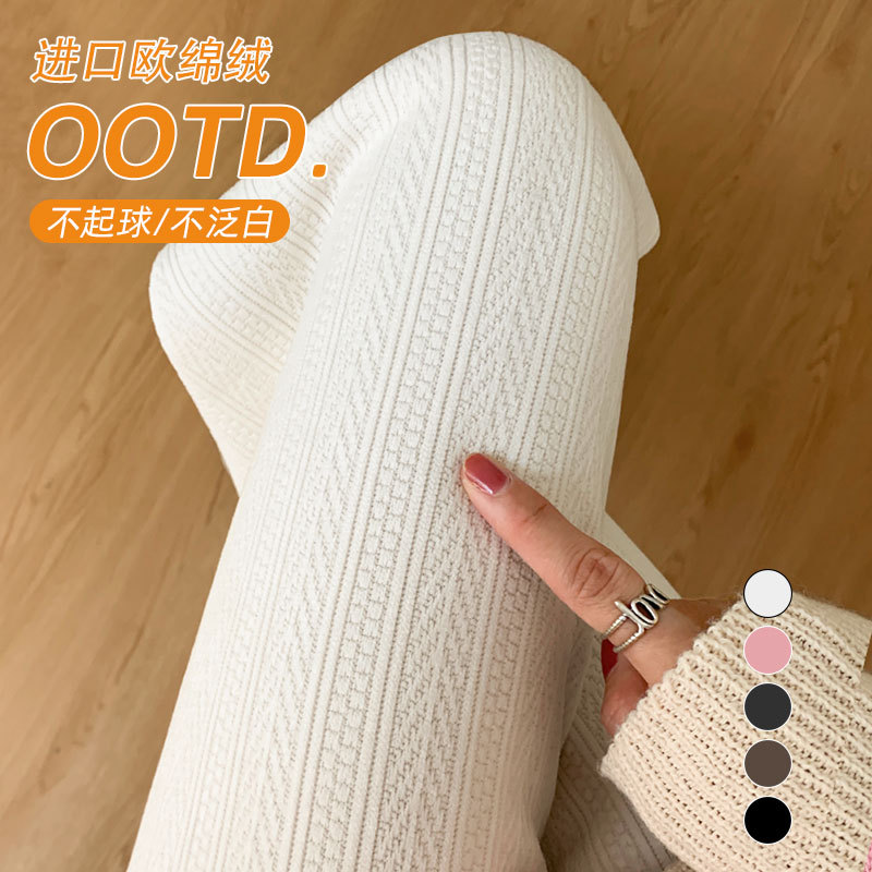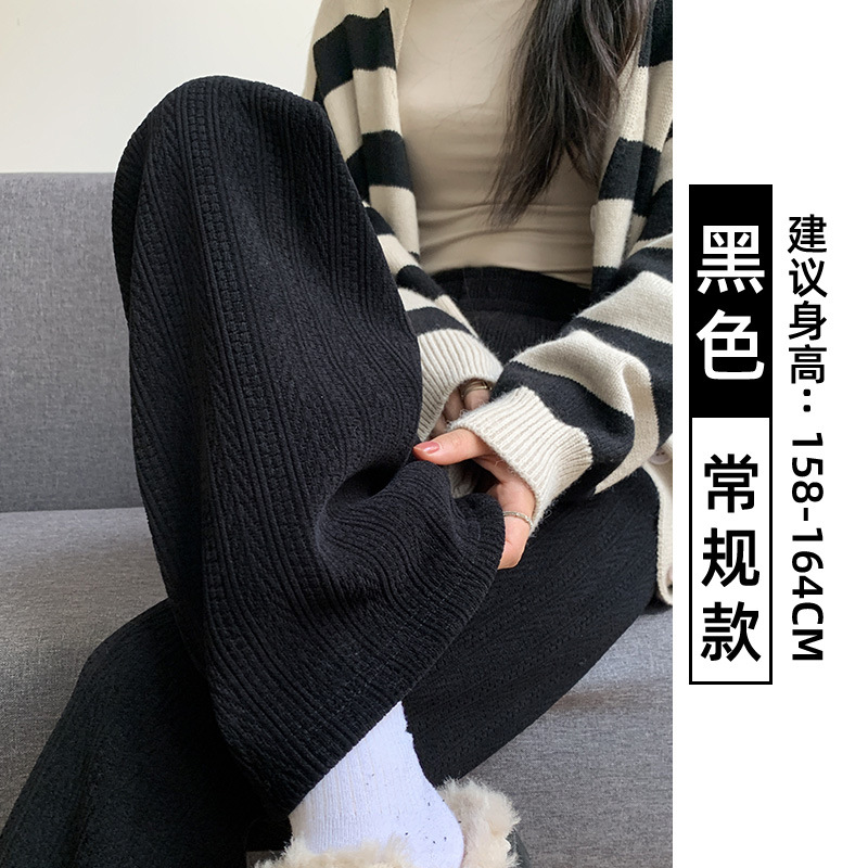 灰色针织阔腿裤女裤子高个子150女生小个子春秋季麦穗纹加绒显高