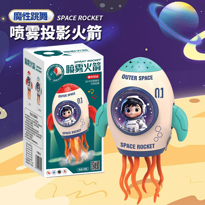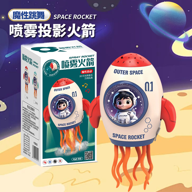 魔性跳舞火箭喷雾投影电动火箭灯光音乐感应逃跑自动避障解压玩具