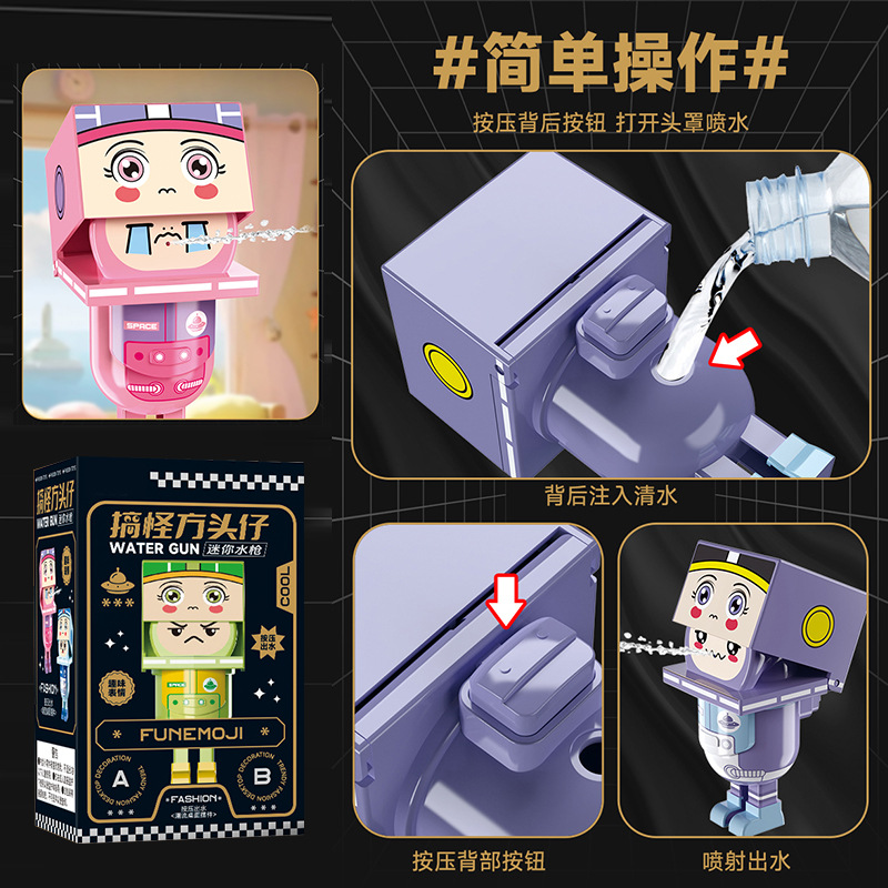 盲盒公仔水枪儿童卡通潮玩手办搞怪小水枪摆件男女孩礼物玩具批发