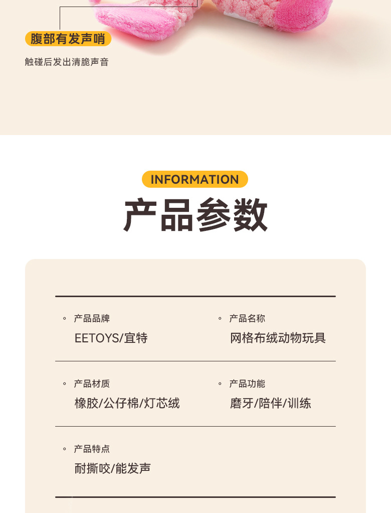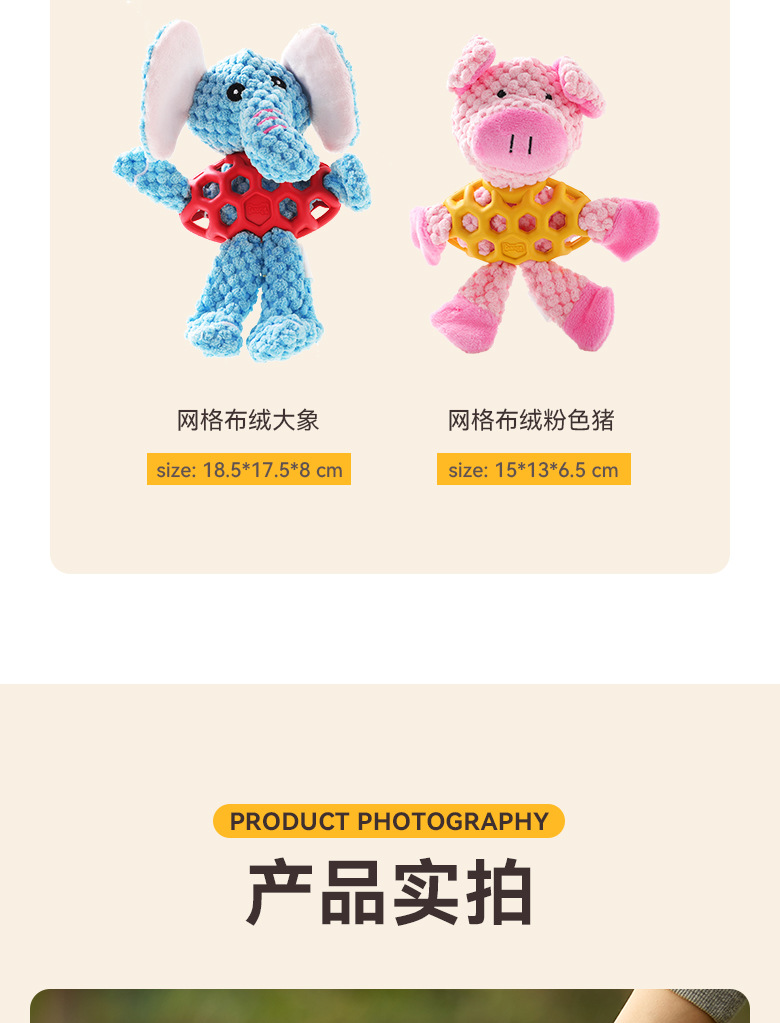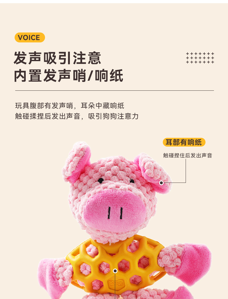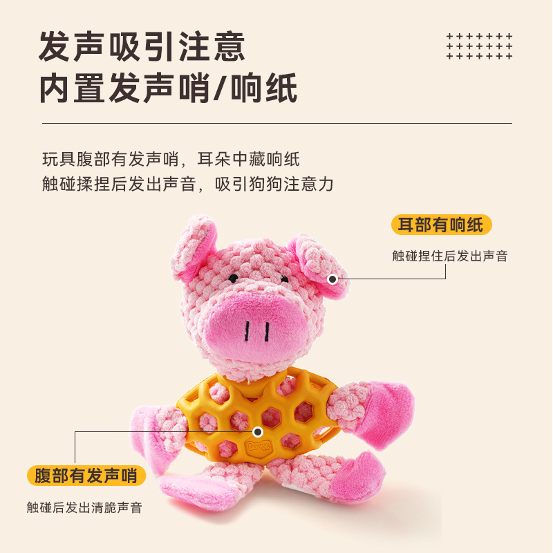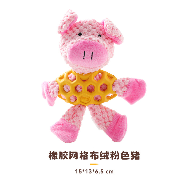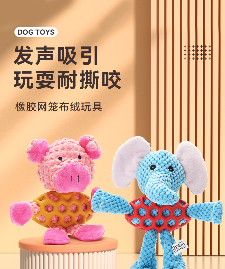 宜特宠物玩具布绒网笼橡胶大象粉猪发声磨牙耐咬互动寻回狗狗玩具