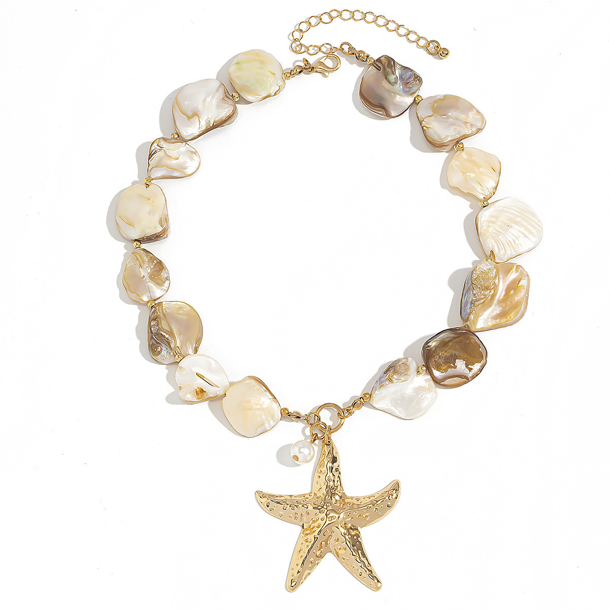 欧美跨境度假风夏日海星贝壳片项链女 沙滩海螺珍珠项饰necklace