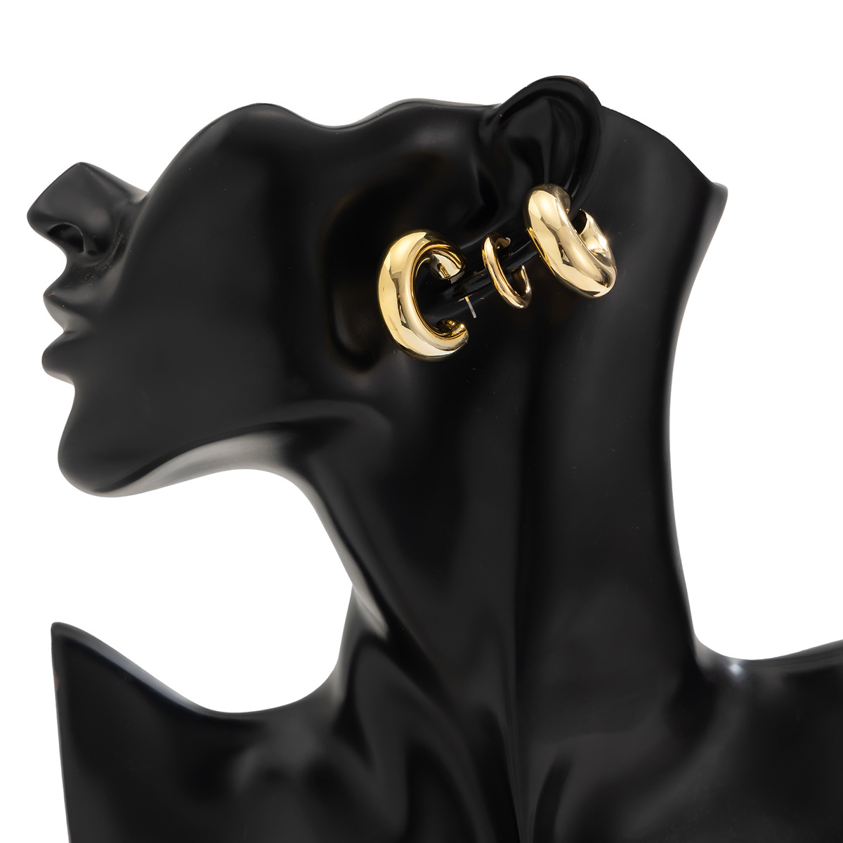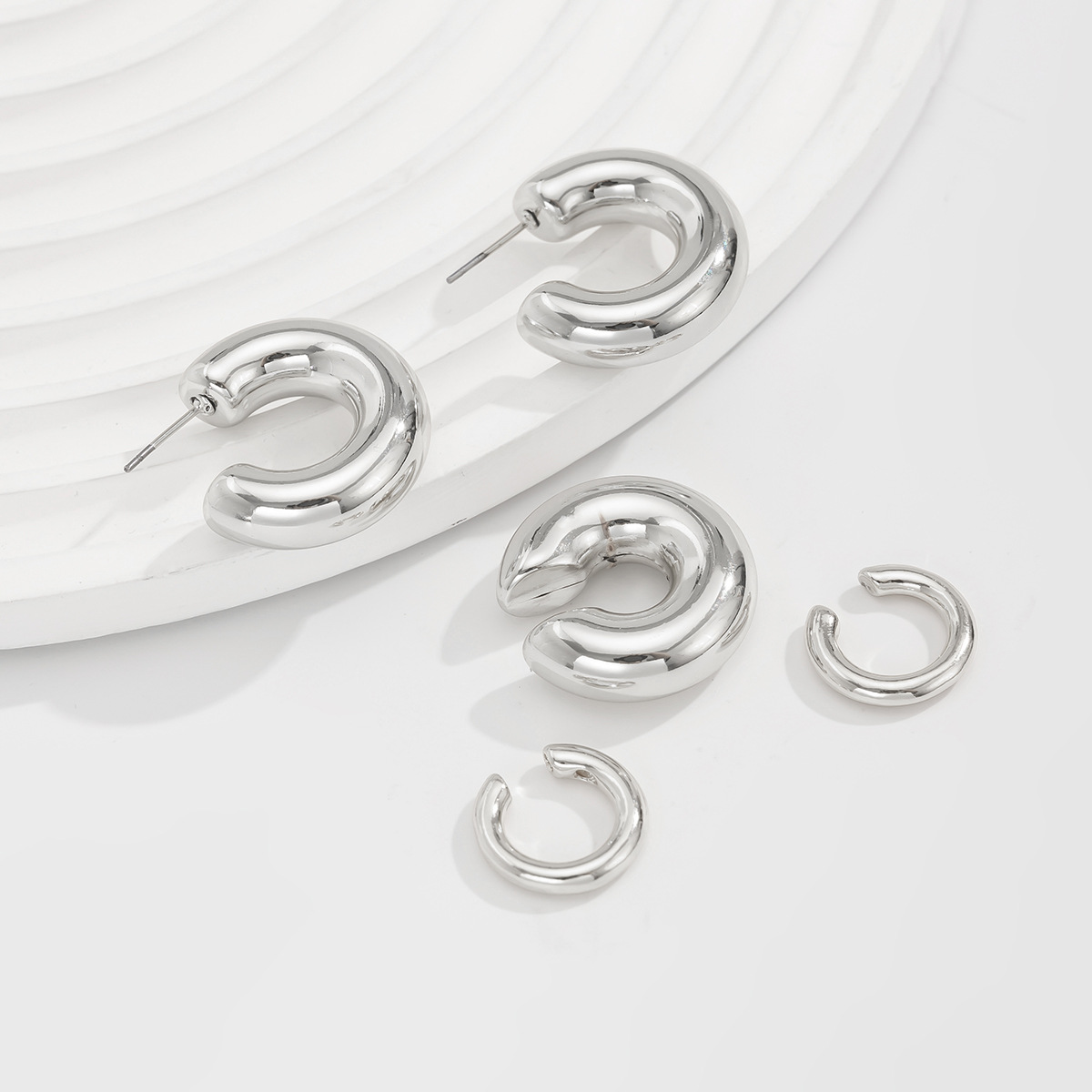 欧美跨境ins风金属光面C形耳扣耳骨夹 时尚圆管空心耳夹耳钉套装