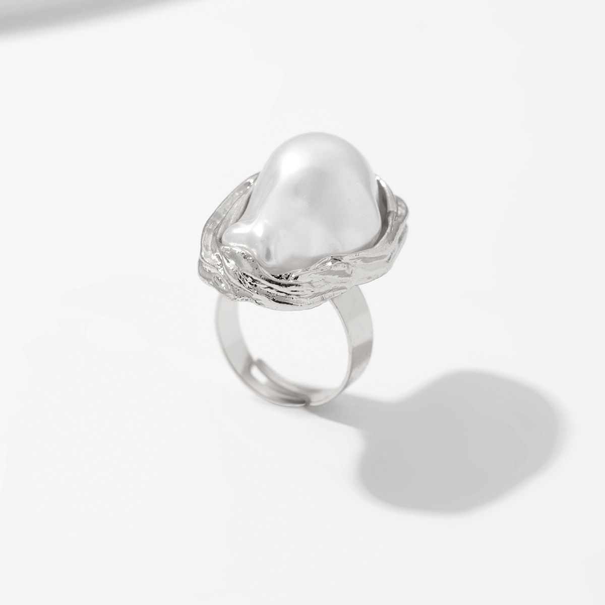 欧美跨境巴洛克异形仿珍珠戒指套装 时尚ins风金属褶皱花朵指环女