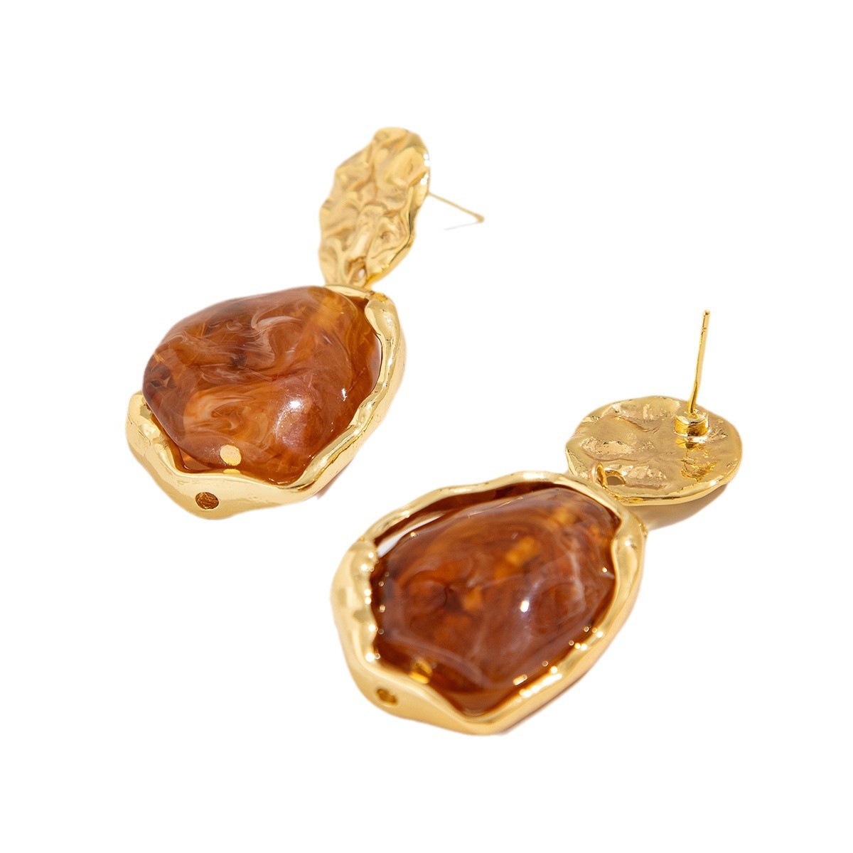 欧美跨境设计感液态金属褶皱耳钉女 不规则巴洛克仿珍珠Earrings