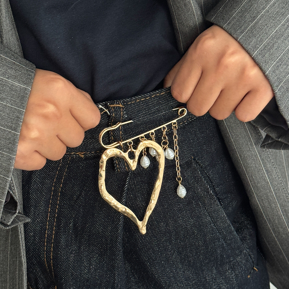 欧美夸张液态熔岩大爱心形吊坠胸针配件 甜酷珍珠裤脚链别针衣饰