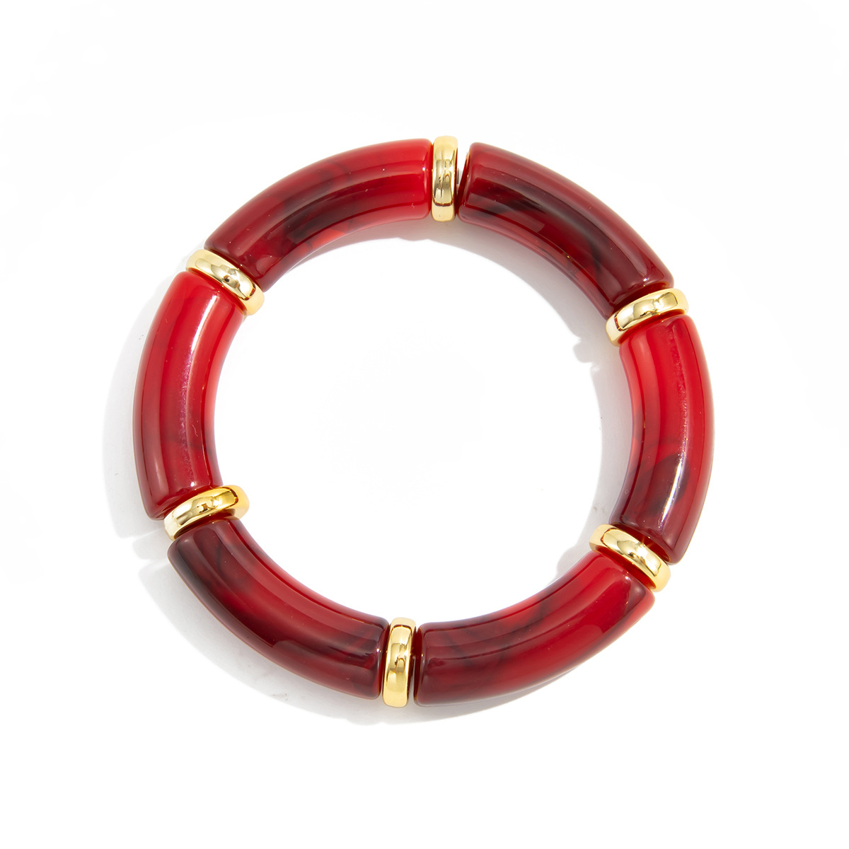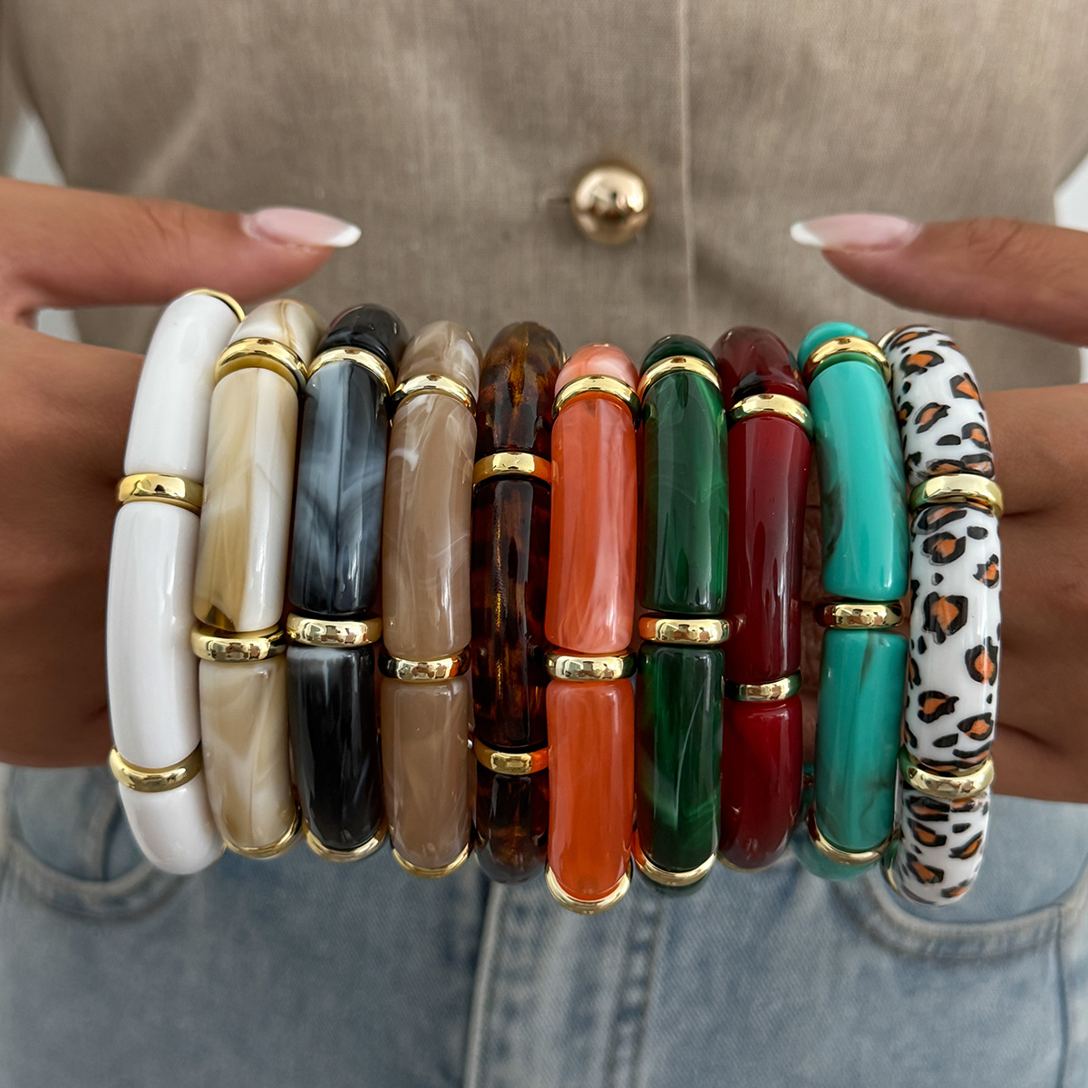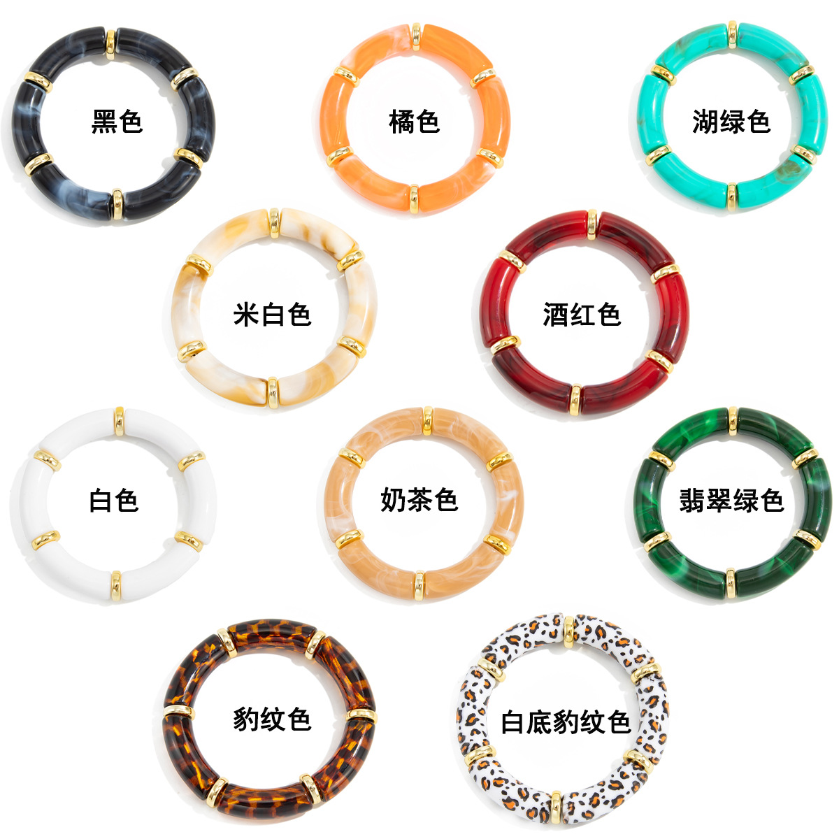 欧美跨境时尚ins风晕染树脂弯管弹力手链 设计感豹纹竹节手串镯子