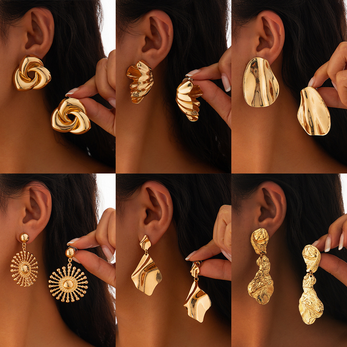 欧美跨境夸张褶皱金属风几何耳饰时尚简约ins太阳花不规则耳钉女