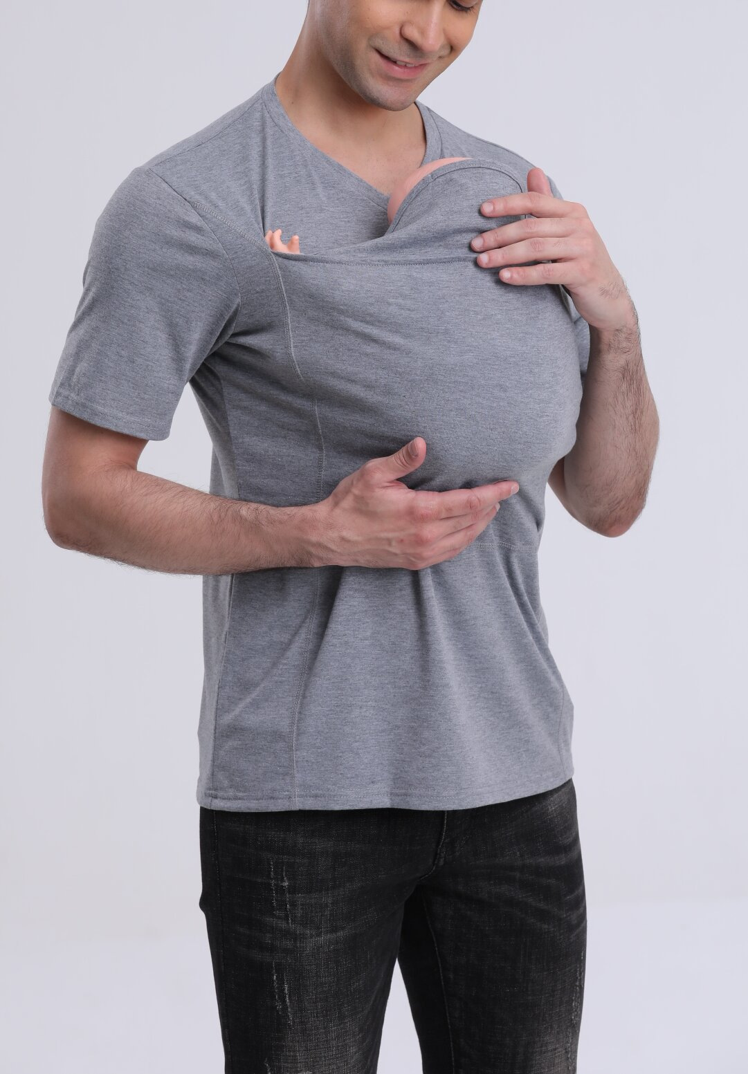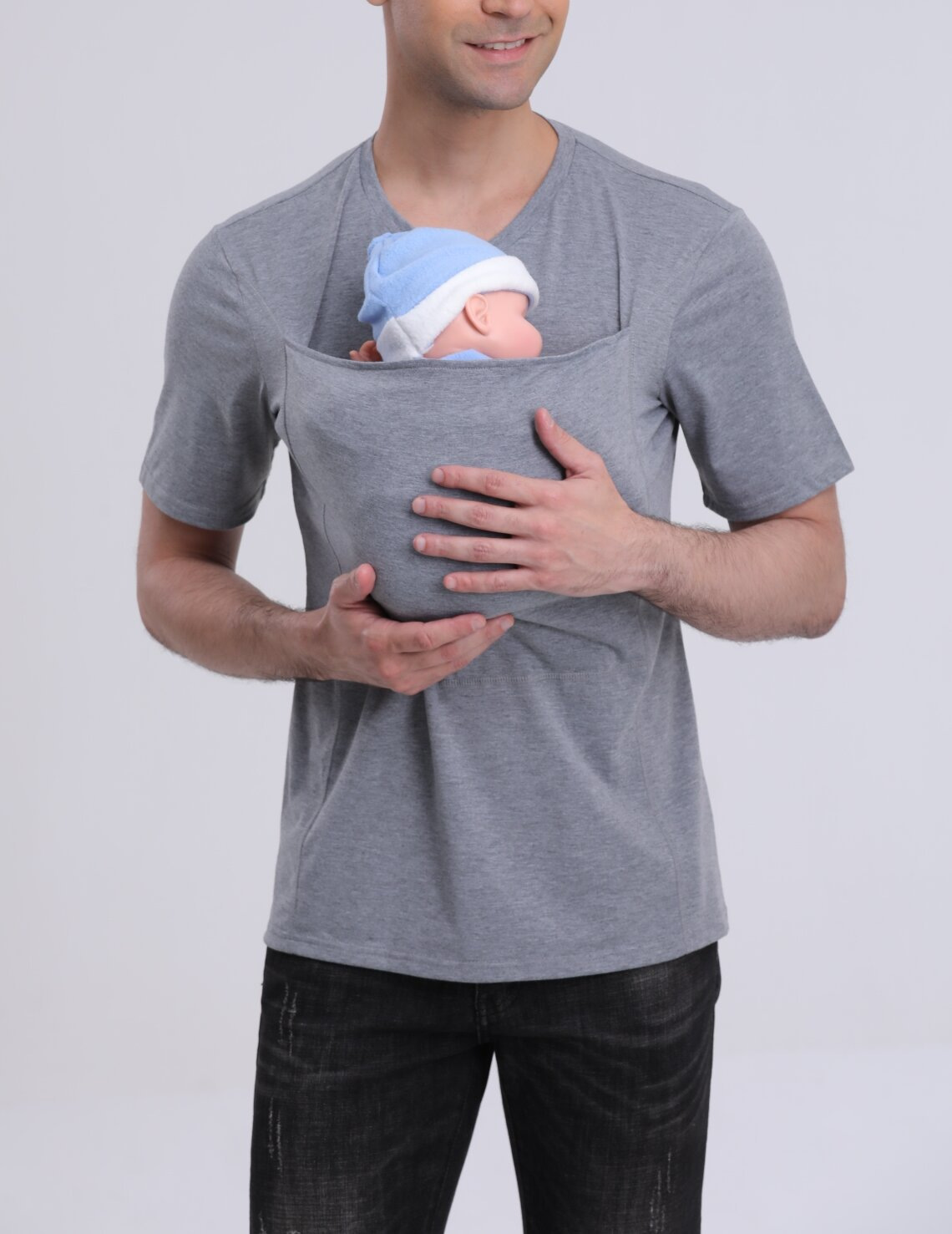 欧美亚马逊纯棉加厚新版高品质袋鼠爸爸袋鼠妈妈多功能T恤长袖款