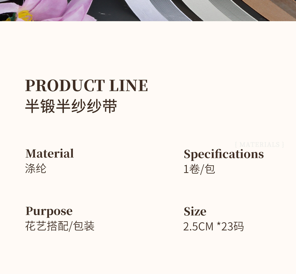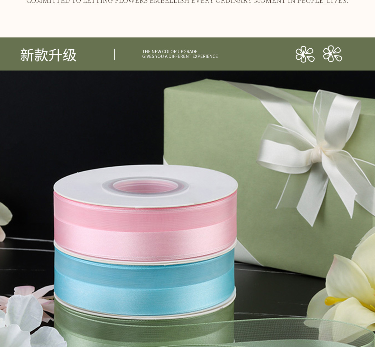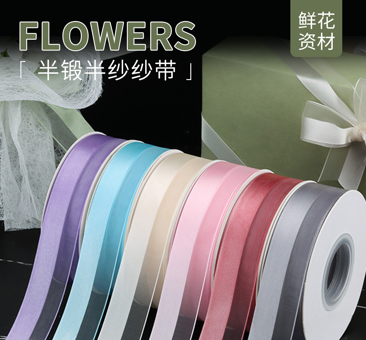 半缎半纱丝带花艺缎带礼物绑带鲜花包装材料生日烘焙蛋糕装饰彩带