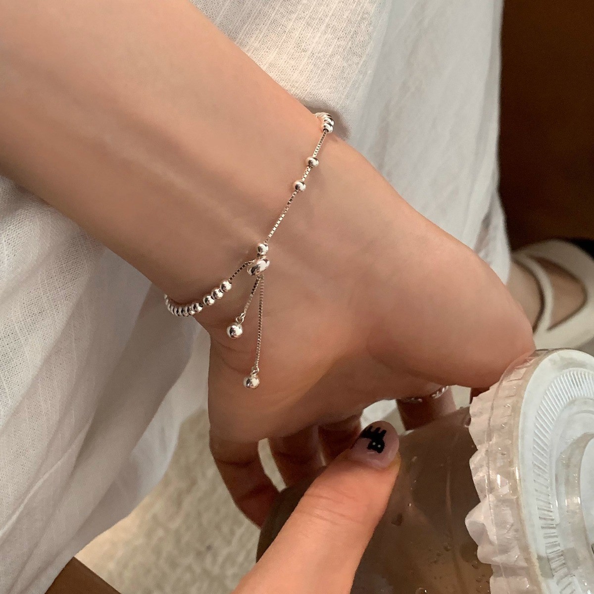 韩国S925纯银星星爱心蓝色银珠手链组合女简约日常手串手饰休闲风