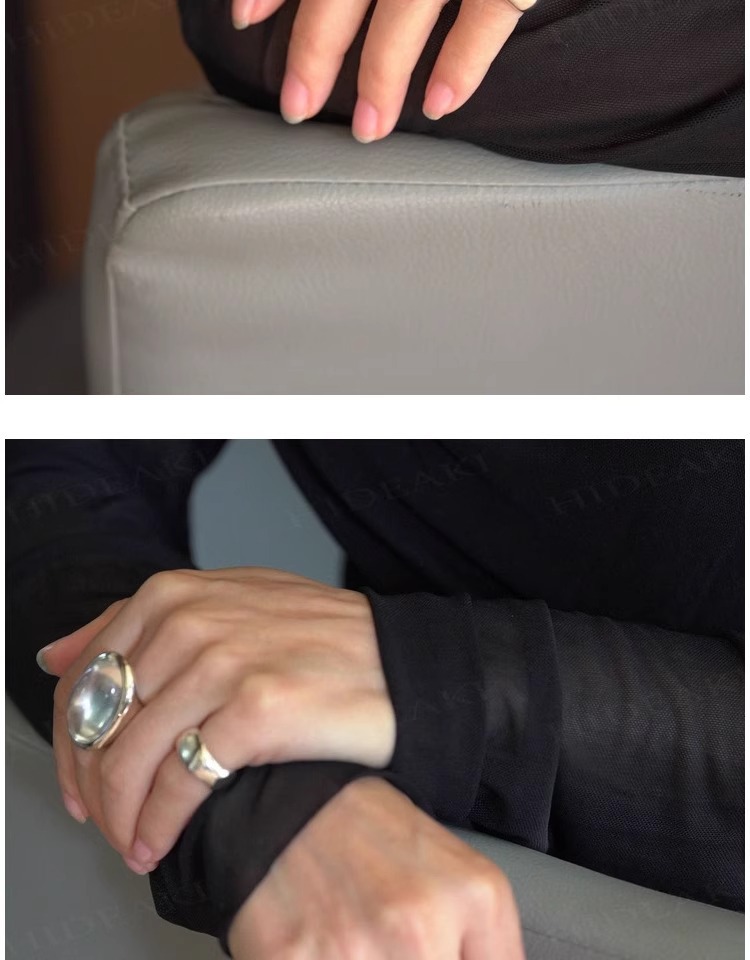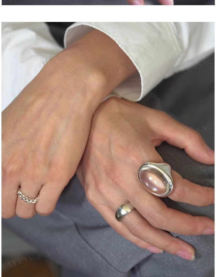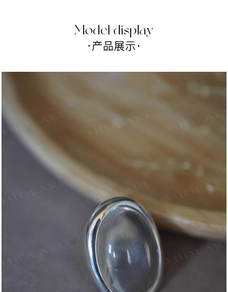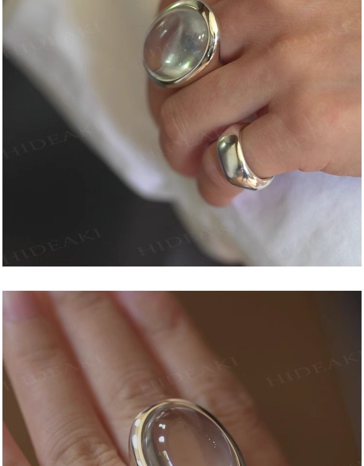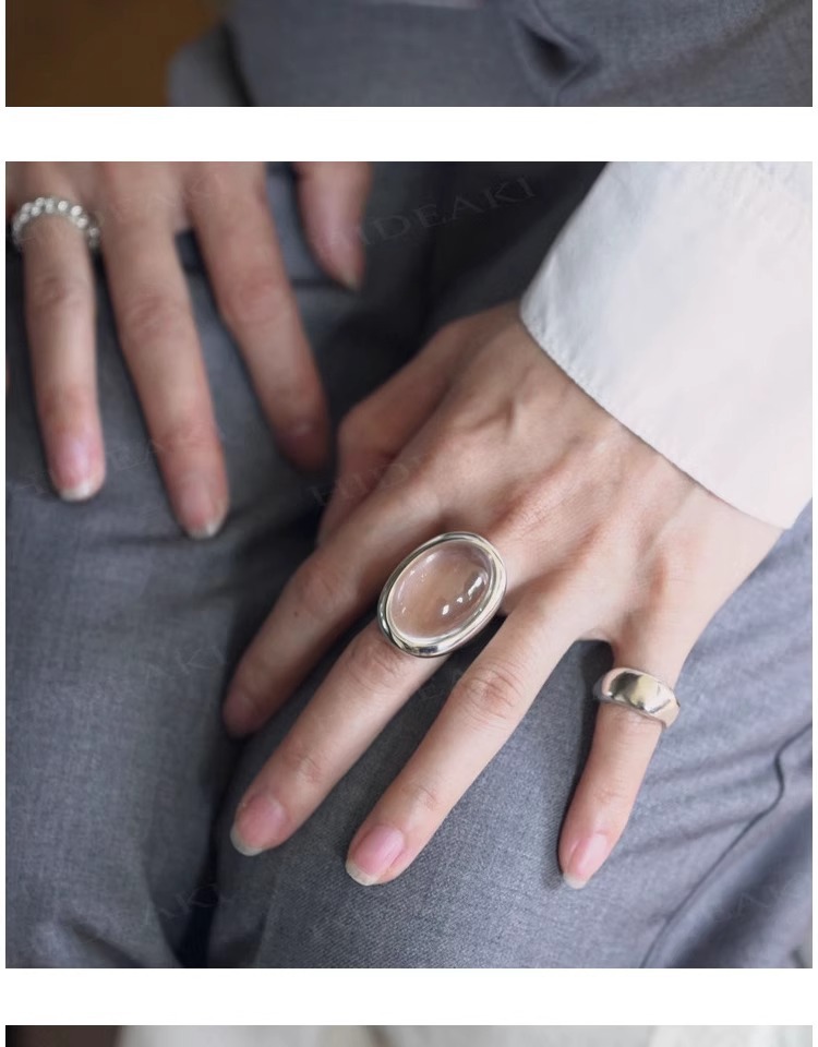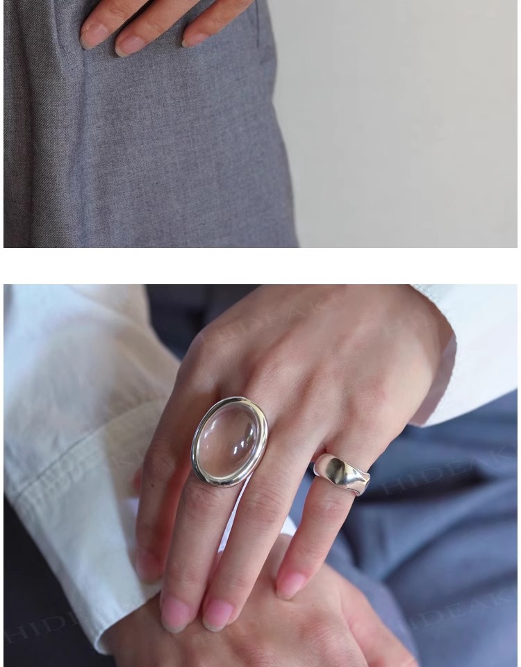 法式复古高级感椭圆透明水滴戒指女小众百搭设计开口可调节
