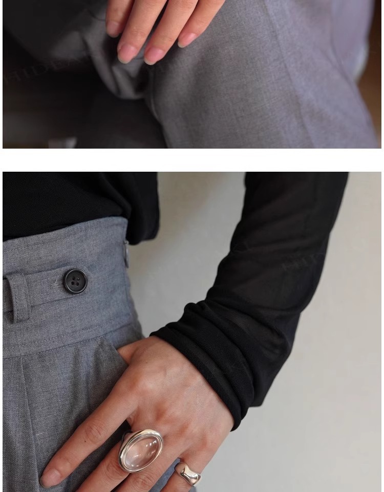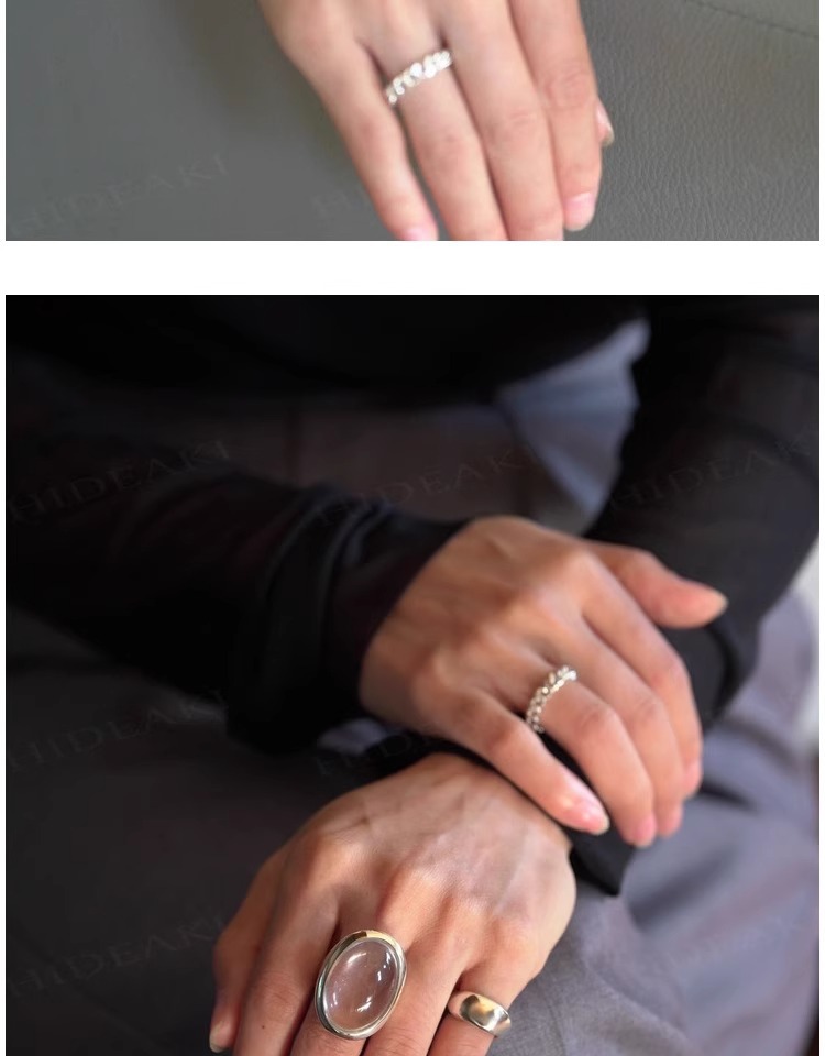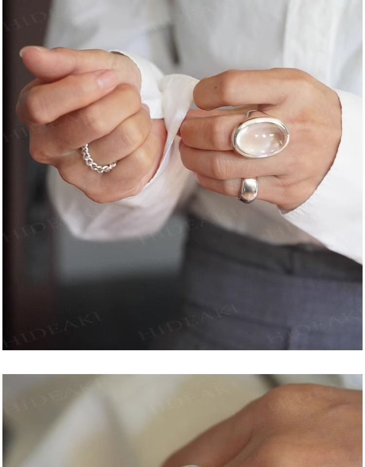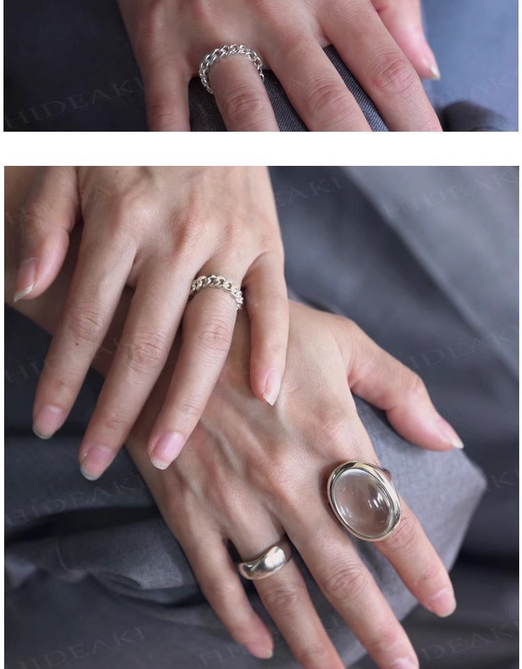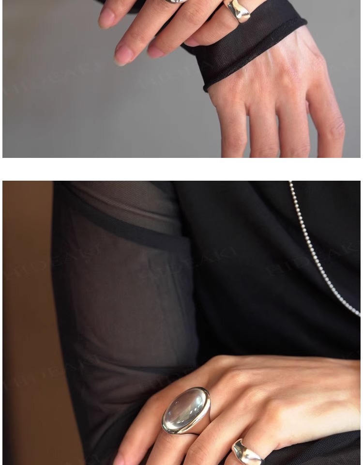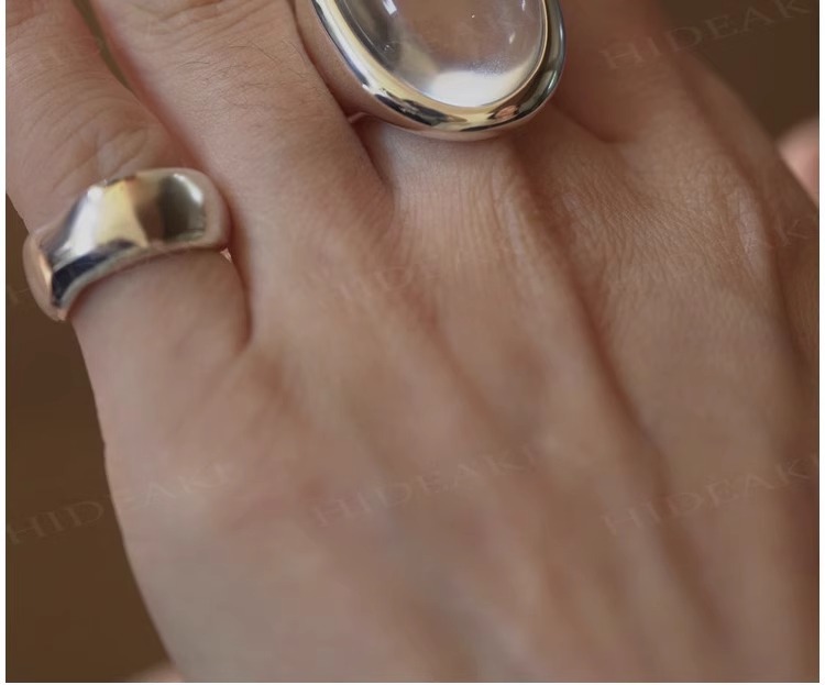 法式复古高级感椭圆透明水滴戒指女小众百搭设计开口可调节