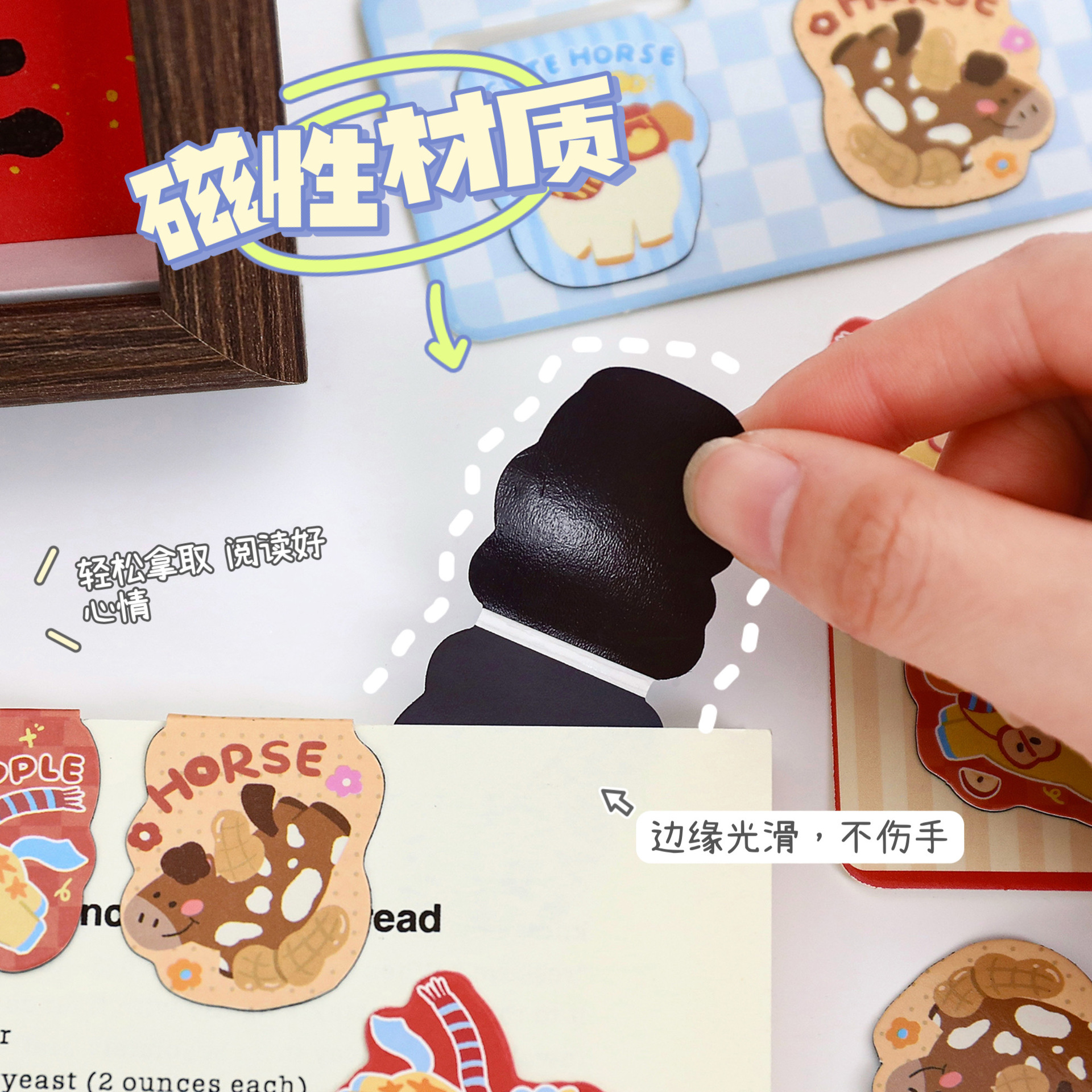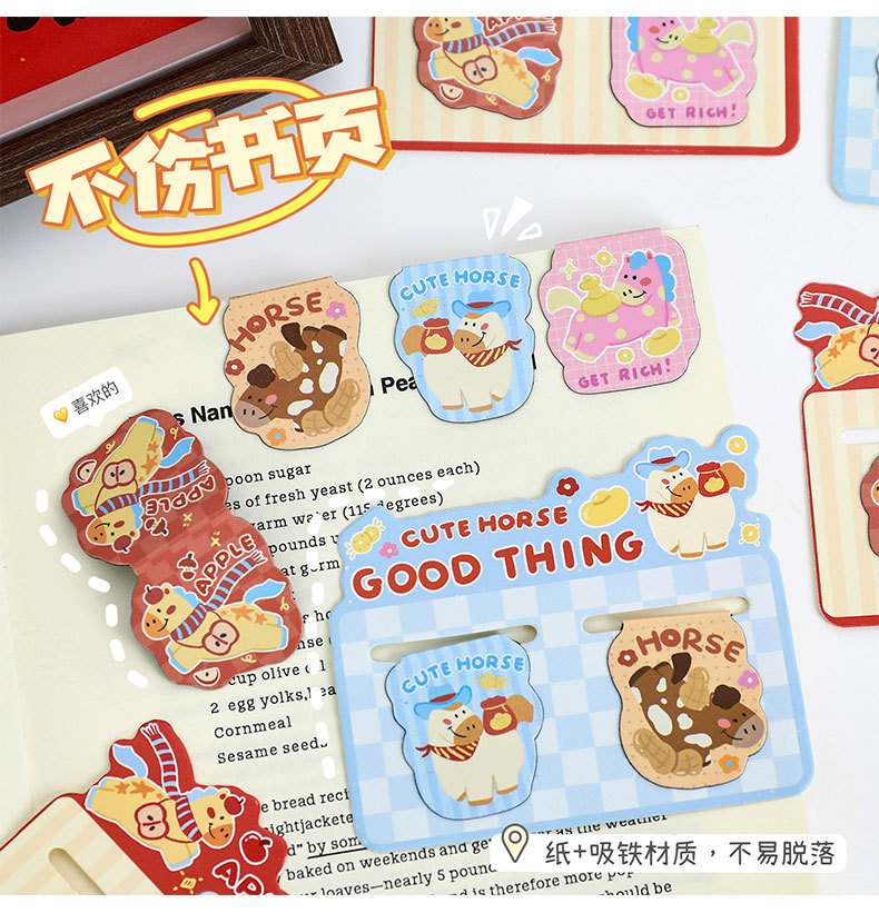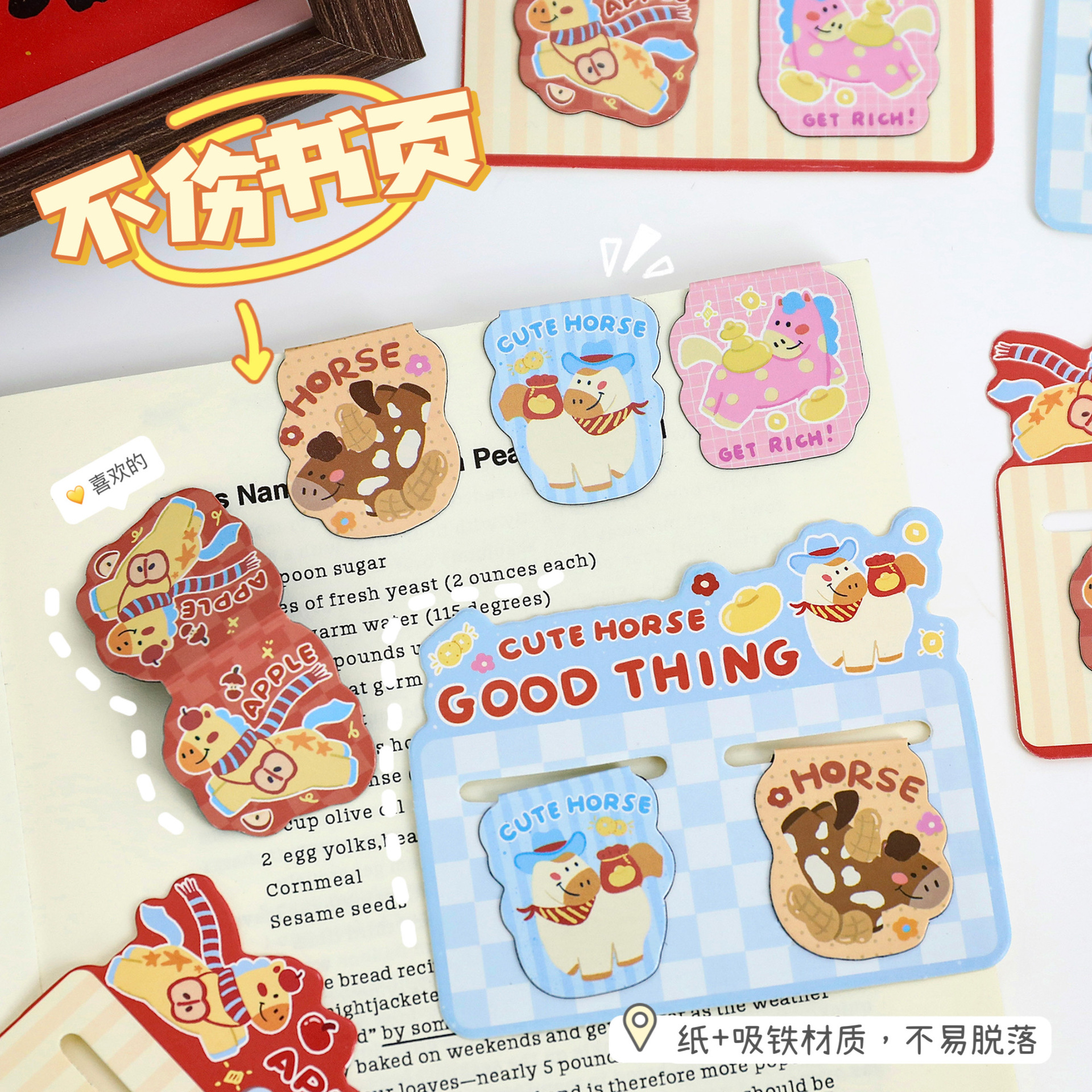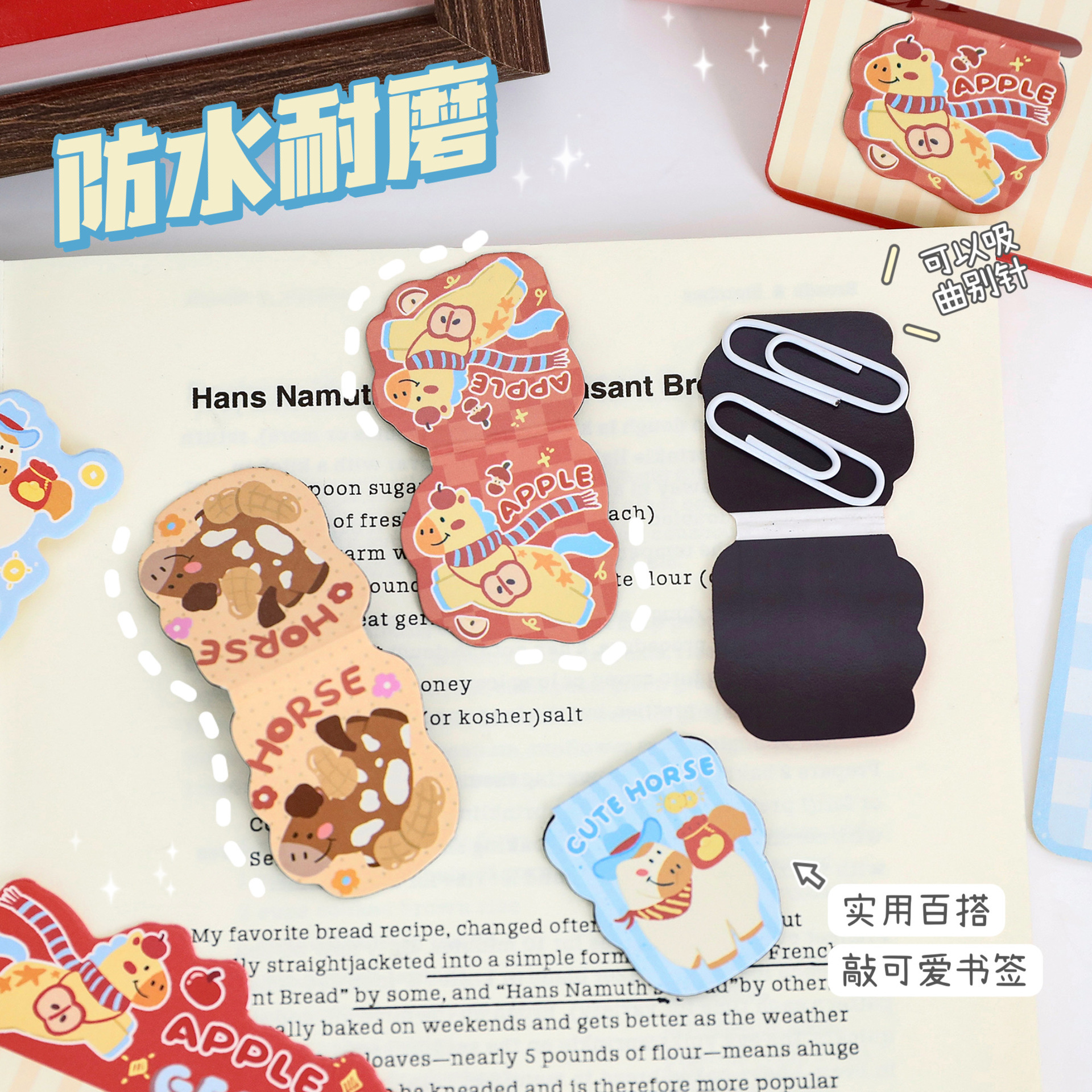 可爱小马磁性书签卡通马年磁吸书签学生双面阅读书页夹书本小夹子