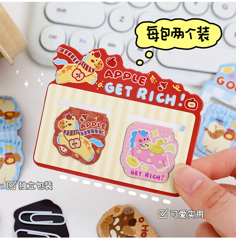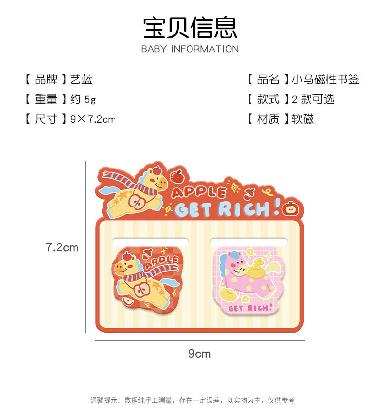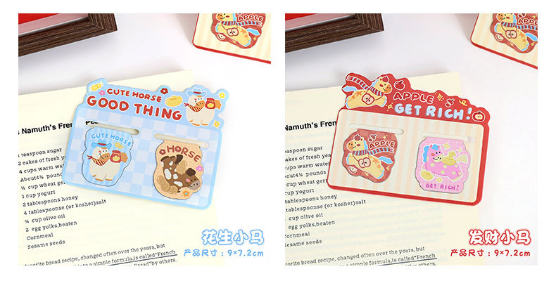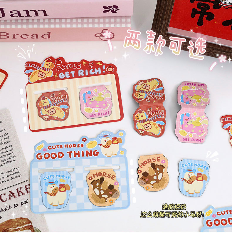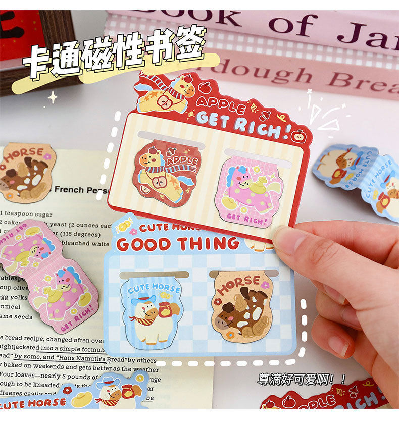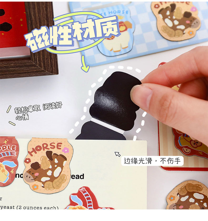可爱小马磁性书签卡通马年磁吸书签学生双面阅读书页夹书本小夹子