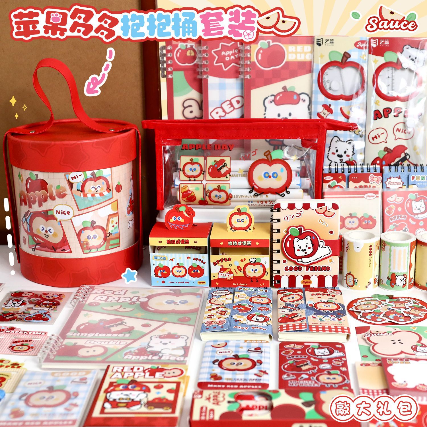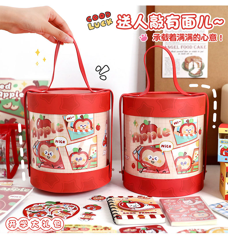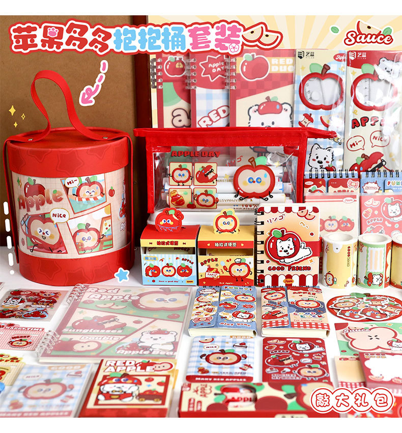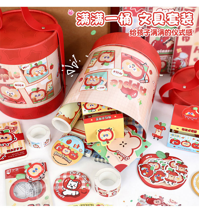 苹果多多文具抱抱桶学生学习用品套装开学文具礼包创意礼物伴手礼