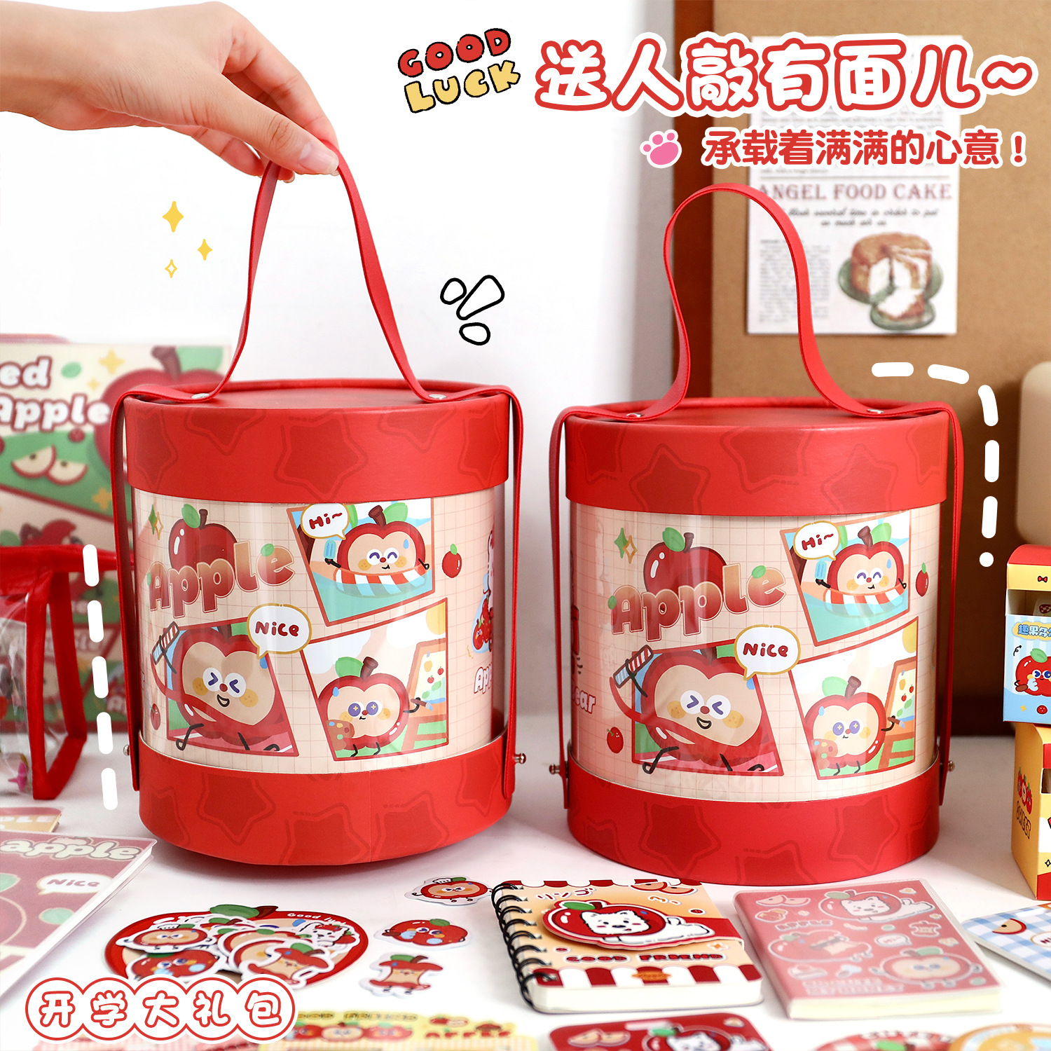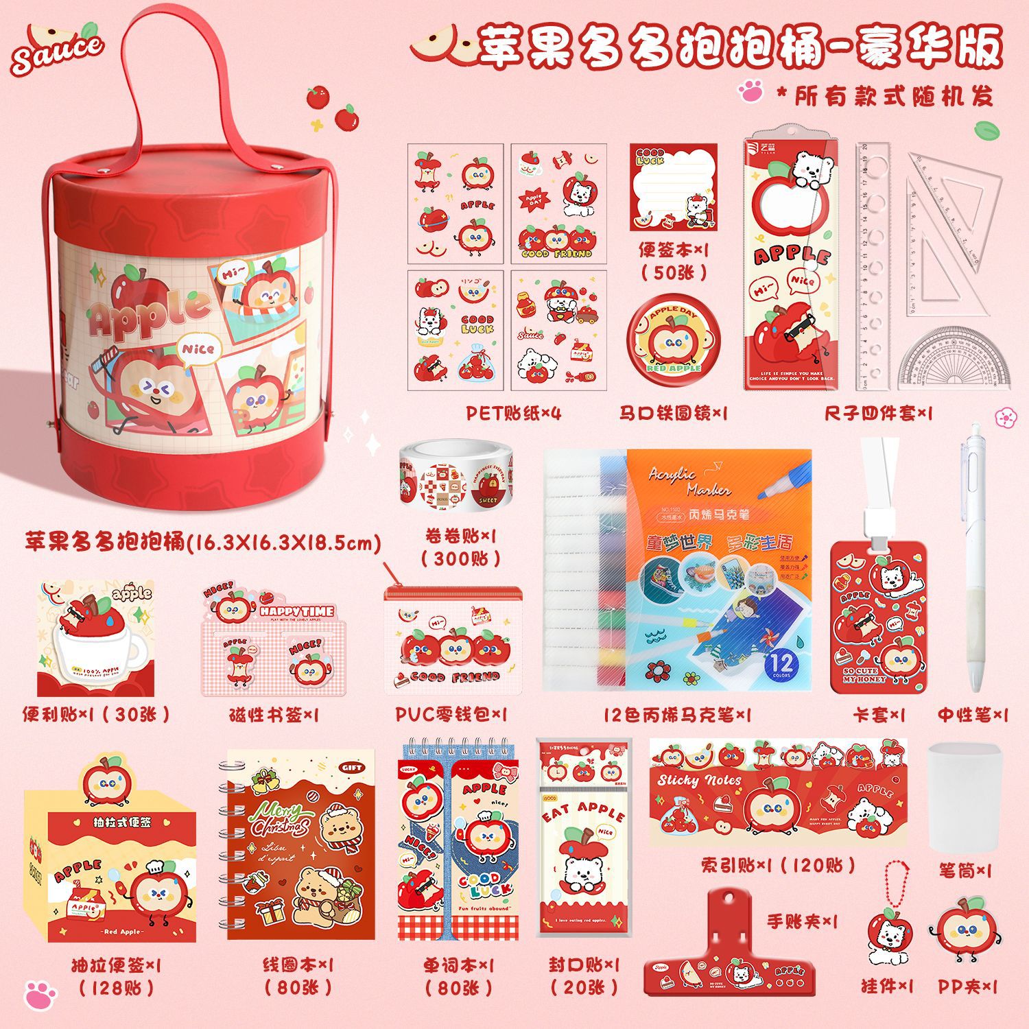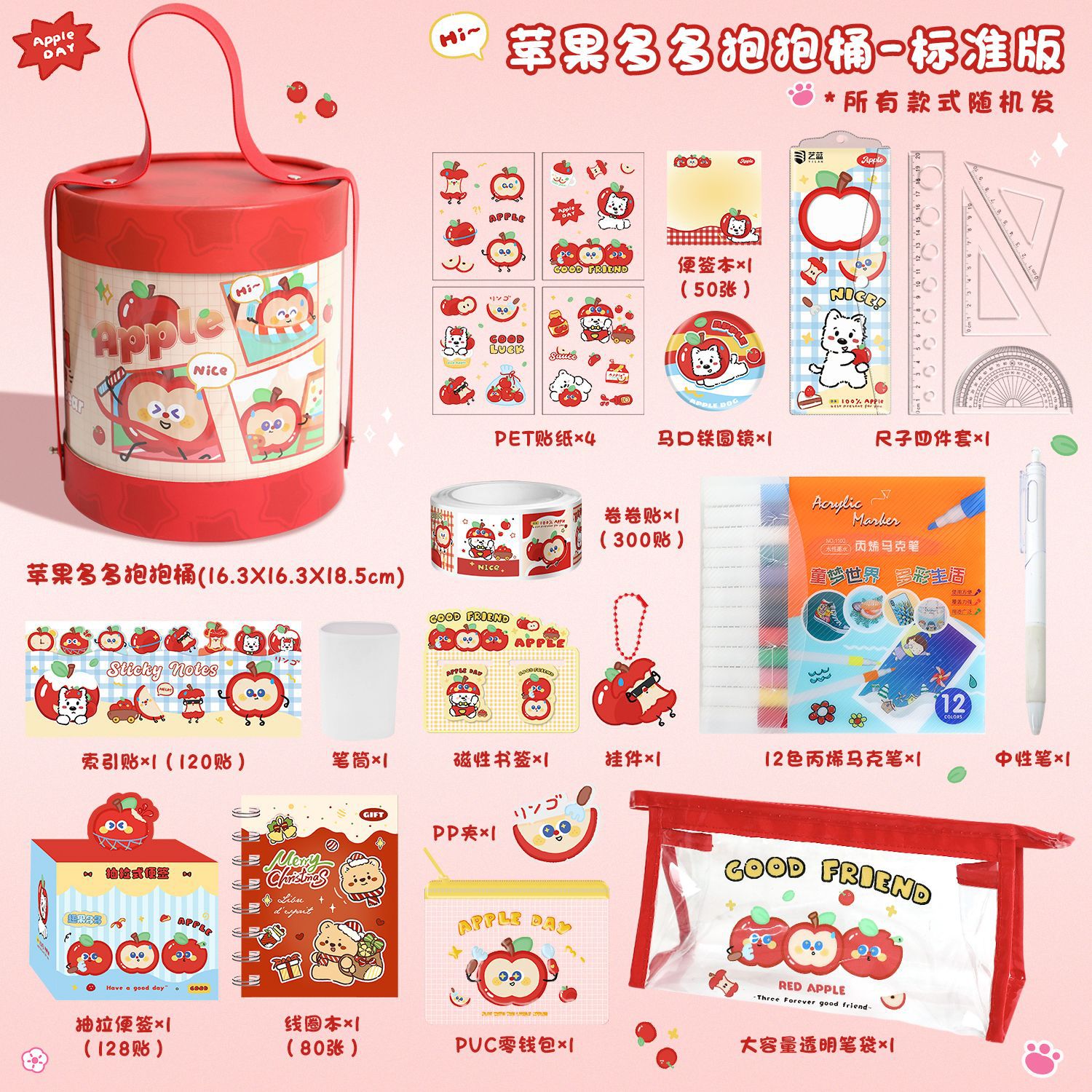 苹果多多文具抱抱桶学生学习用品套装开学文具礼包创意礼物伴手礼