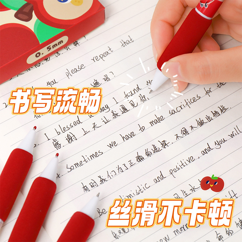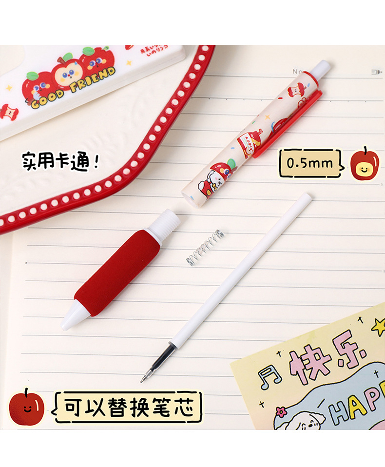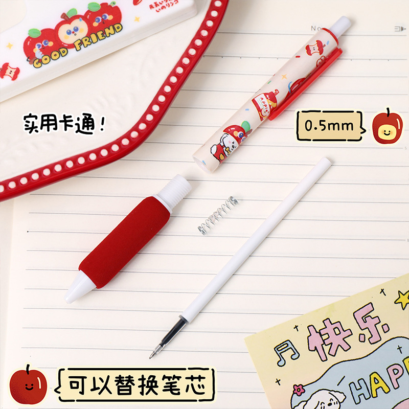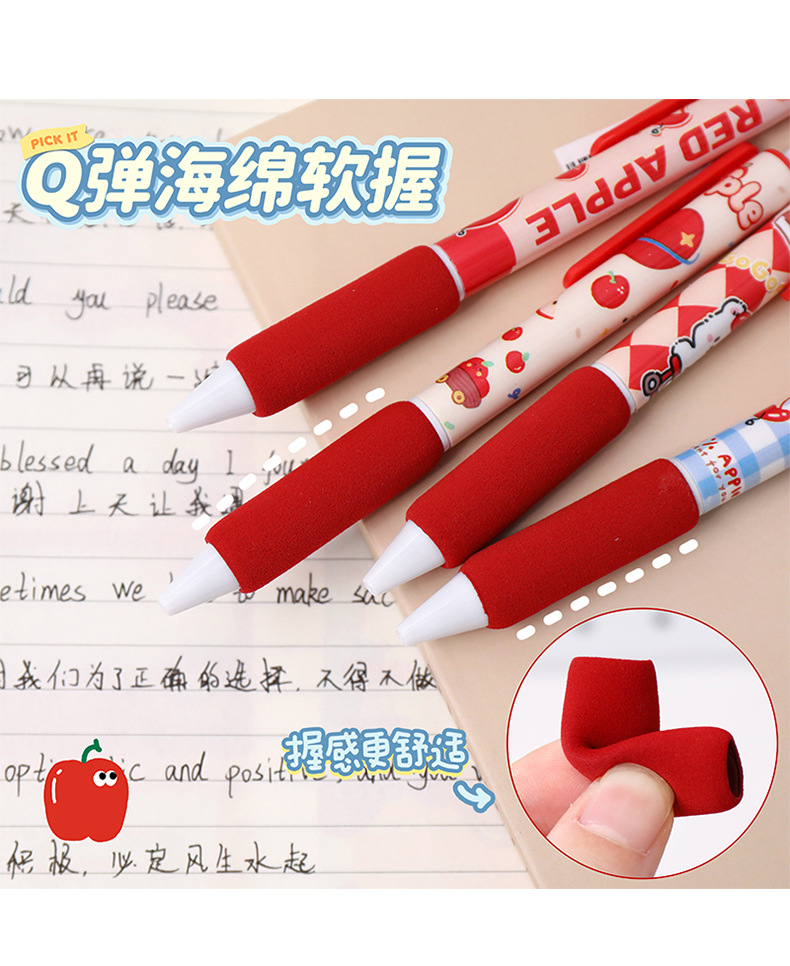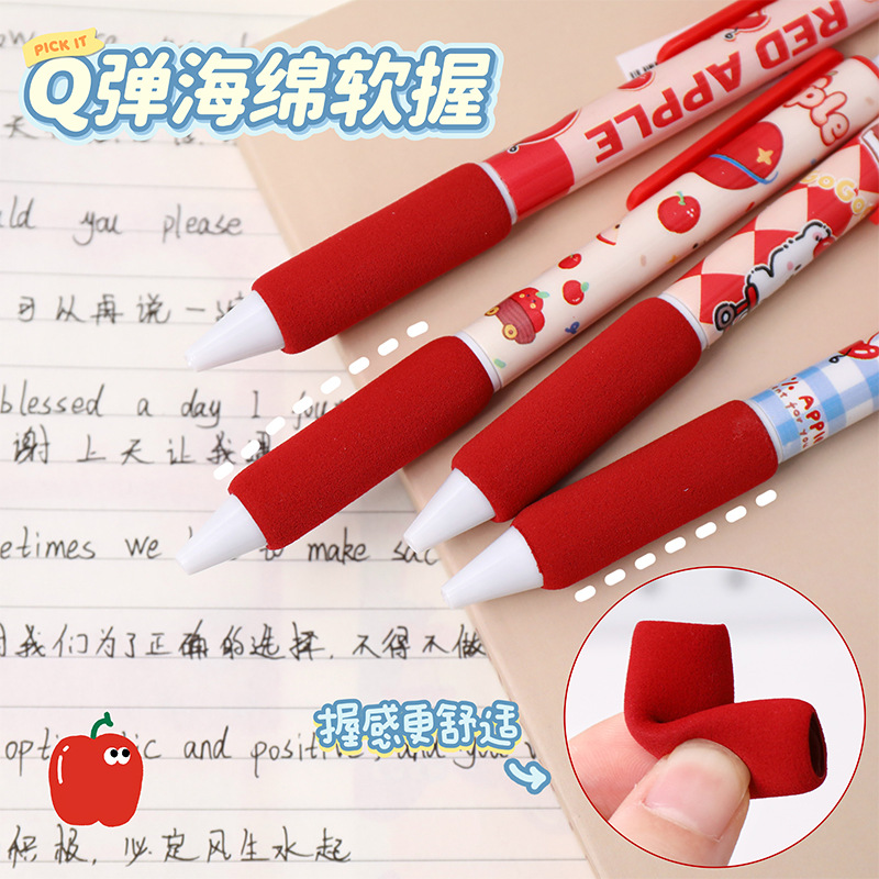 苹果多多中性笔可爱按动st中性软握笔卡通办公室学生用速干刷题笔